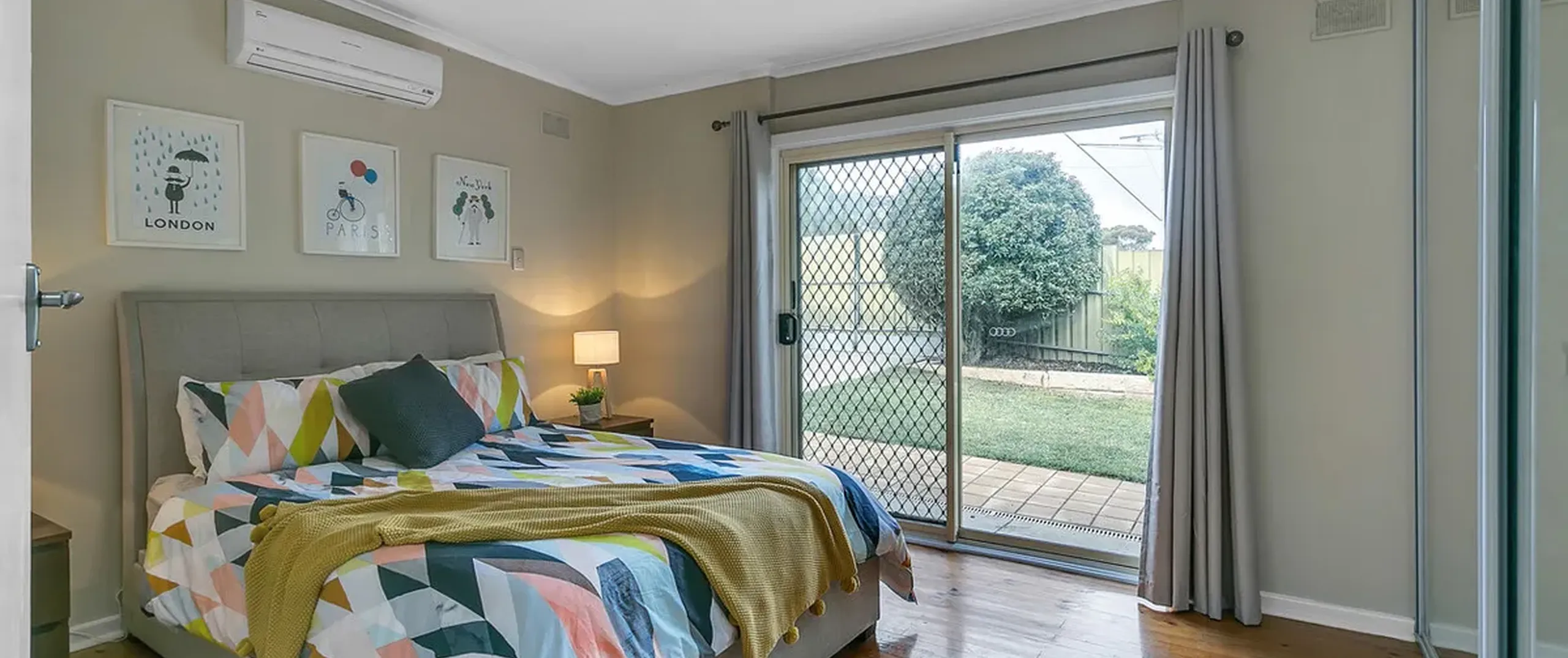 - Large master bedroom with built in robe, ceiling fan and split system air conditioner