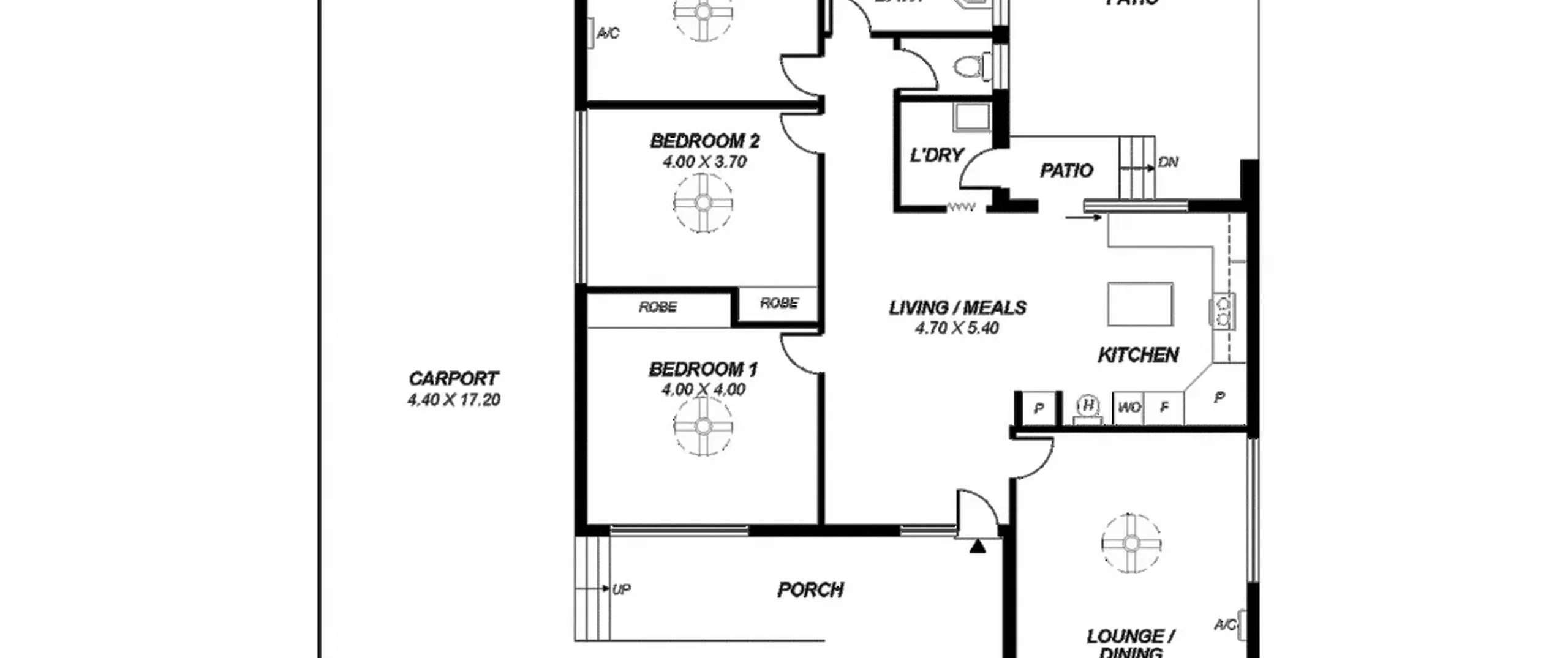 - Good sized bedrooms 1 and 2, both with built-in robes and ceiling fans