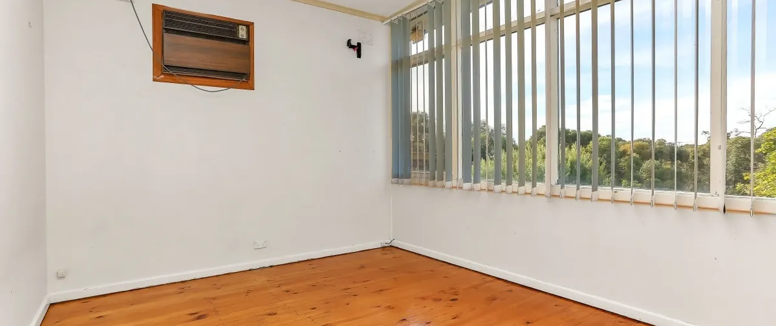 - Spacious bedroom 3 with ceiling fan and wall mounted air conditioner