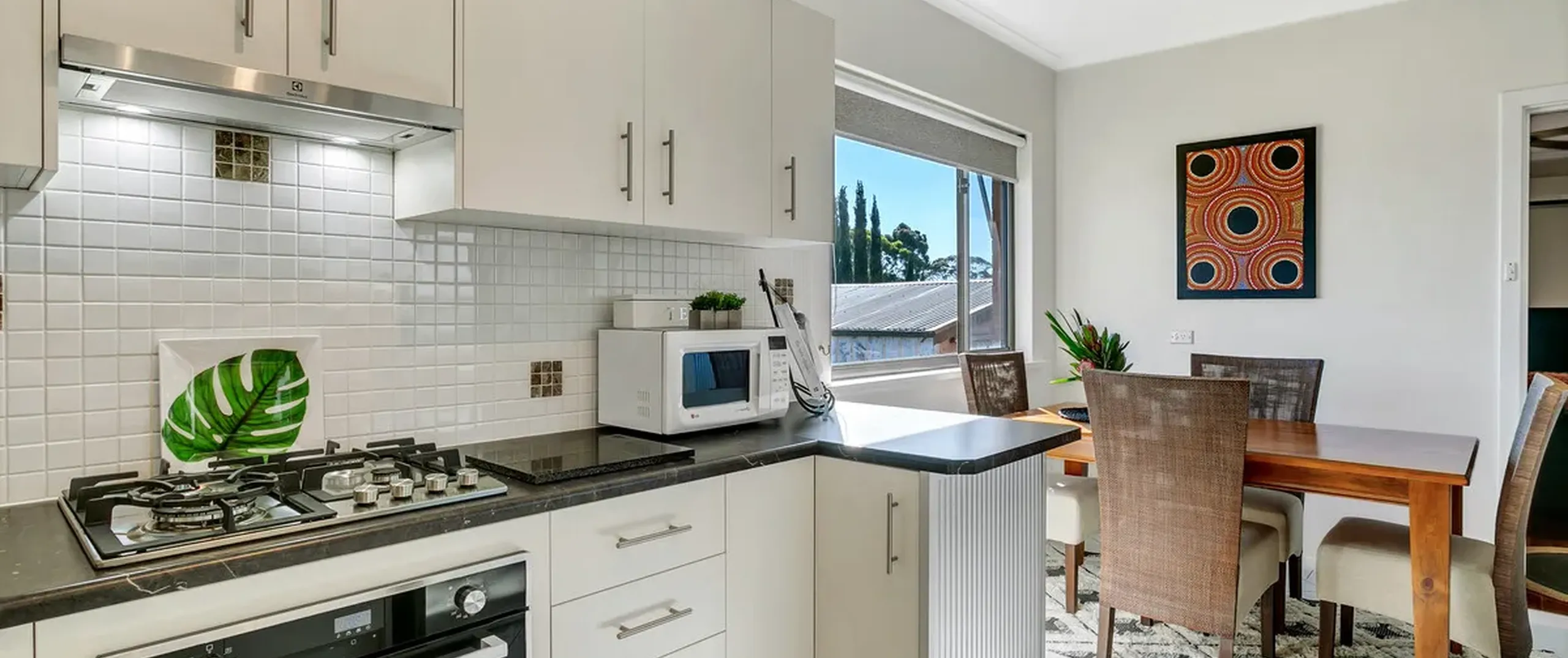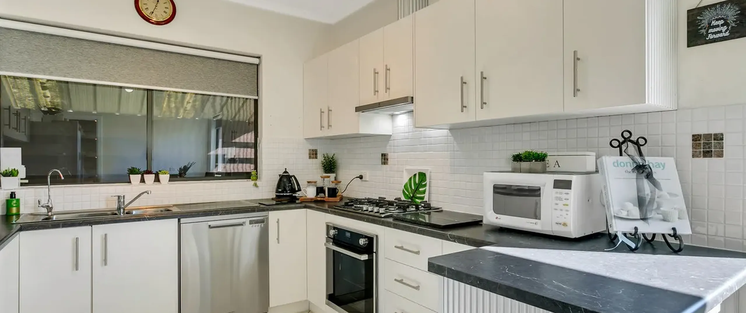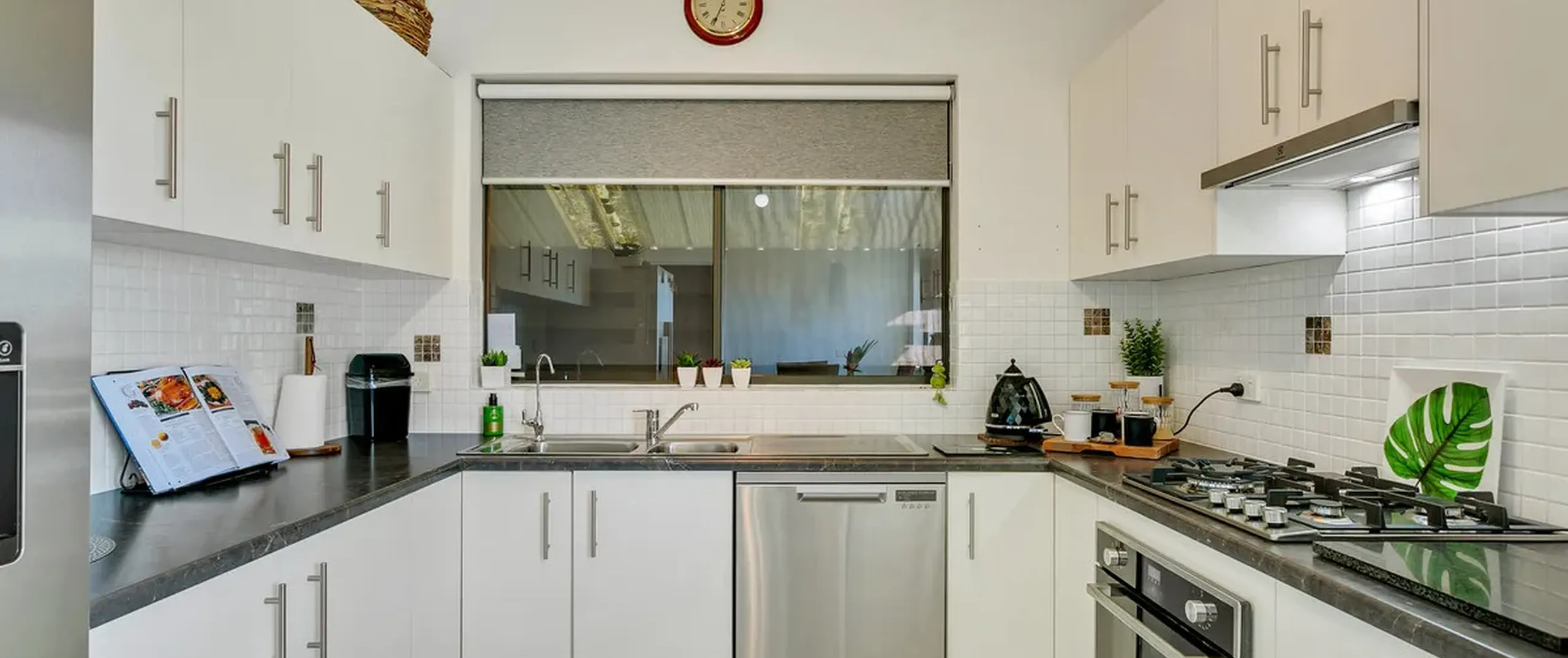 - Modern kitchen with brand new stainless steel appliances, ample bench and cupboard space, built-in pantry, gas cooktop and dishwasher (fridge is plumbed and is included in sale)