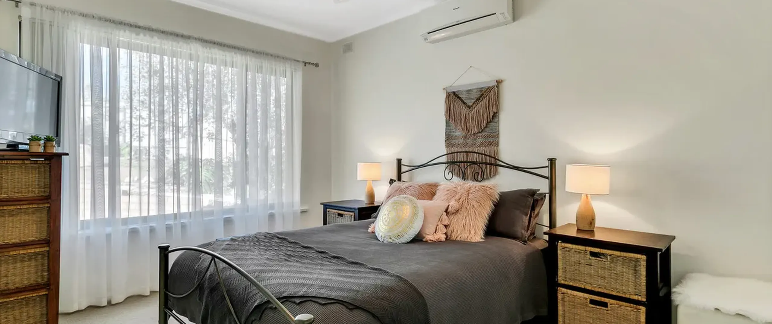 - Spacious, light filled lounge with ceiling fan and split system air conditioner