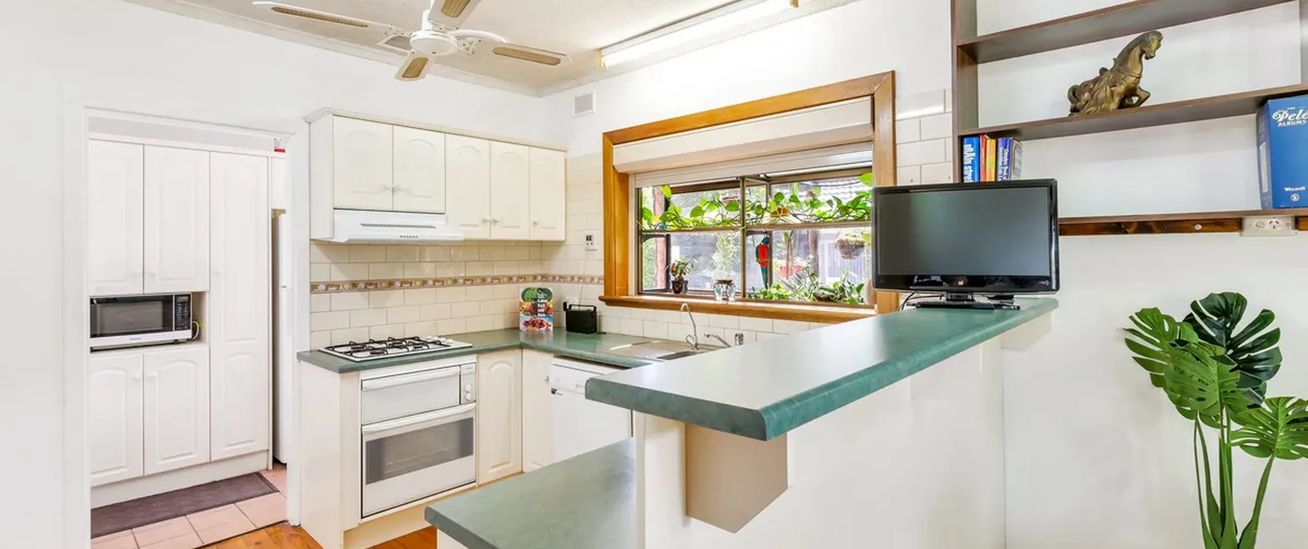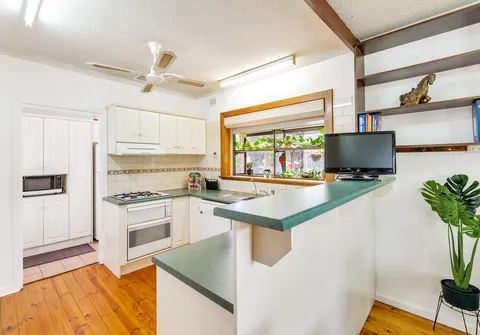 - Practical kitchen with ample cupboard and bench space and gas cooking