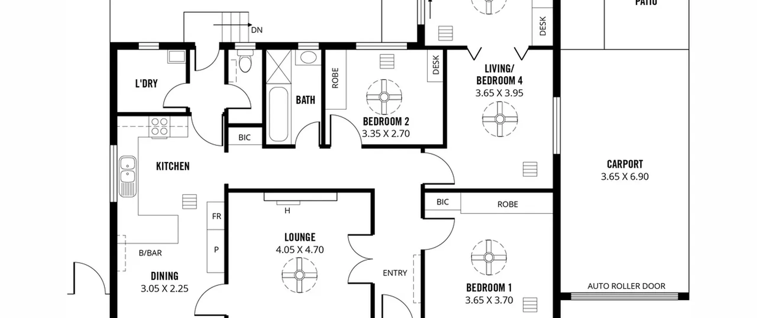 - 3 good sized bedrooms, all complete with built-in robes and ceiling fans