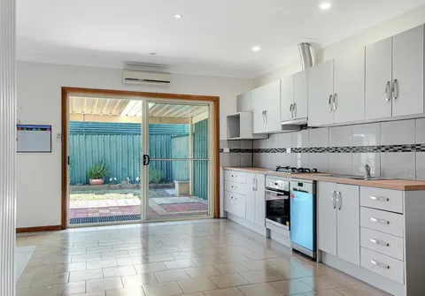 A large light-filled combined kitchen, meals and family room sits at the front of the layout with split-system air conditioning for year round comfort. The kitchen area opens out to the paved undercover outdoor entertaining area and low maintenance garden, whilst providing enough space for your small pet to enjoy.