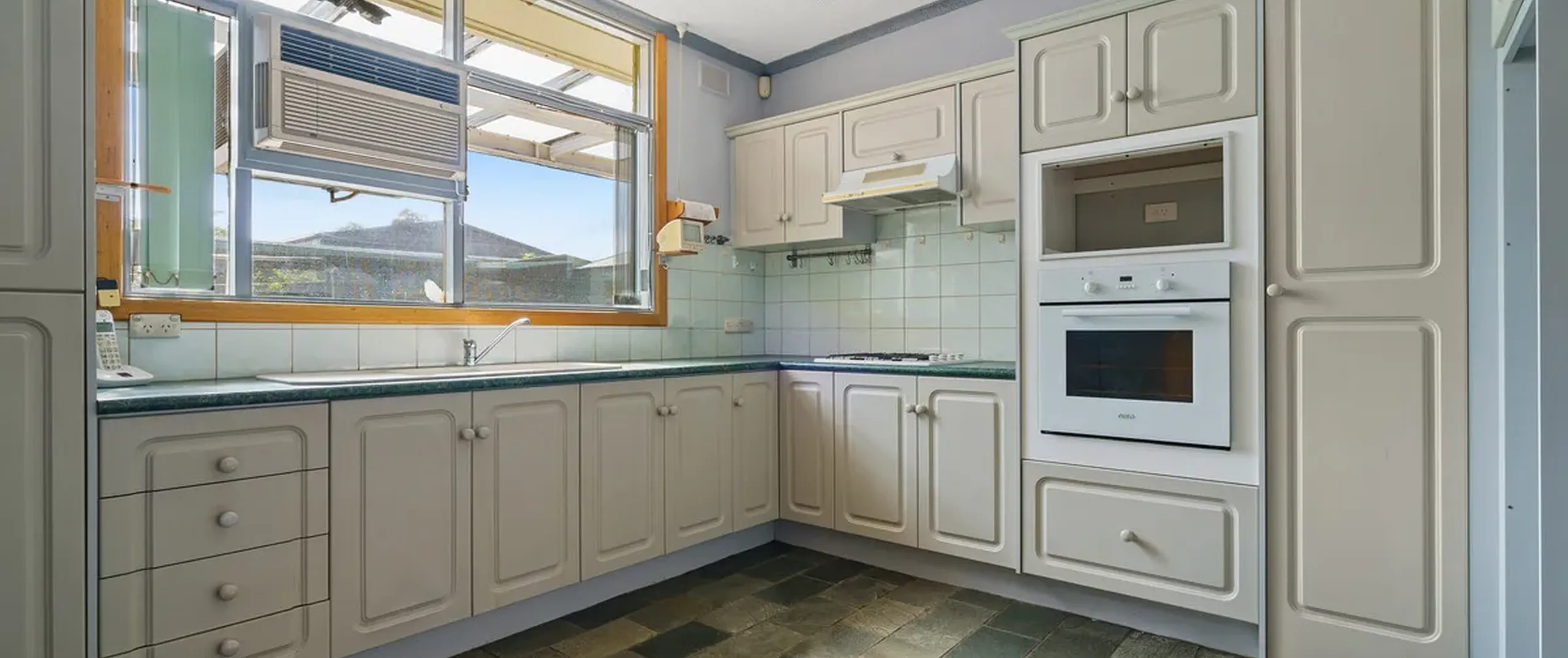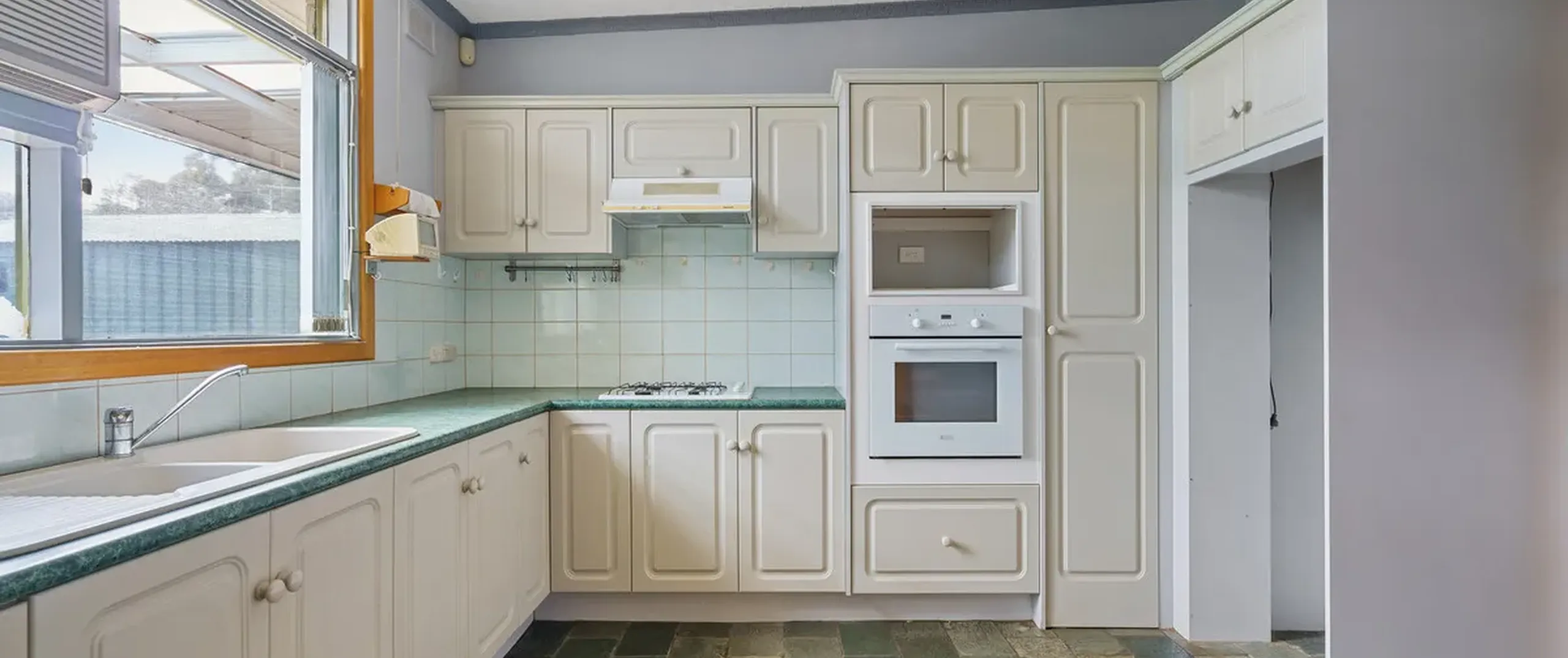 - Original kitchen with gas cooktop, pantry and abundance of cupboard space throughout