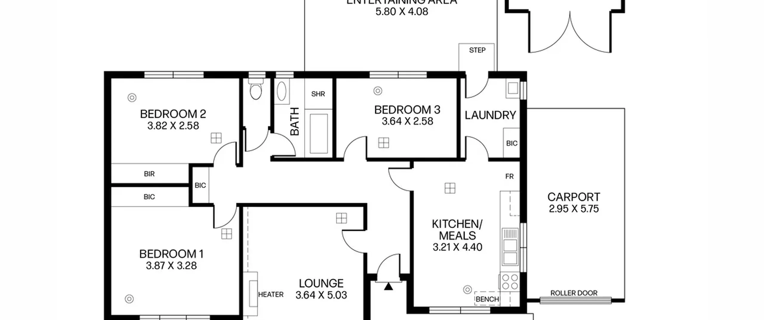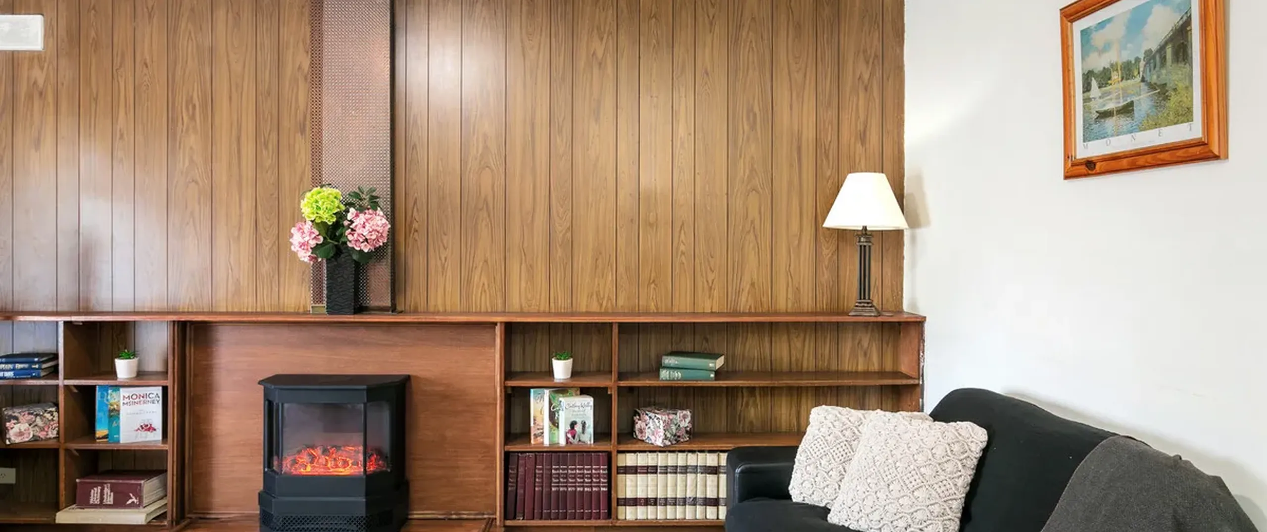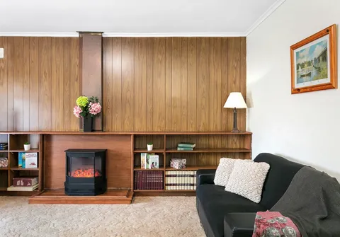 - Generous and cosy lounge room with built-in shelving and electric heater for those cooler months