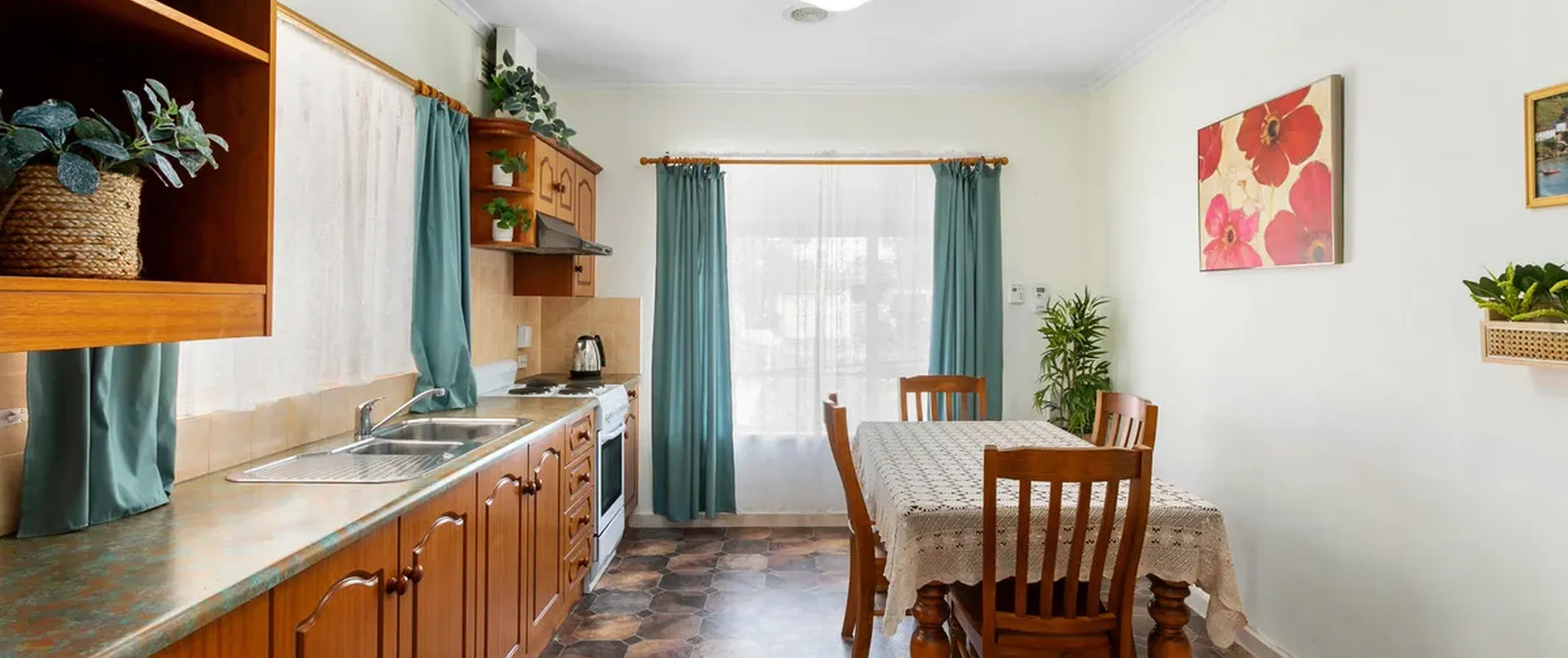 Inside, there are three good-sized bedrooms, a central main bathroom and a charming lounge room upon entry. An immaculate eat in kitchen is perfectly positioned and well-equipped to suit the cook of the home with plenty of storage.