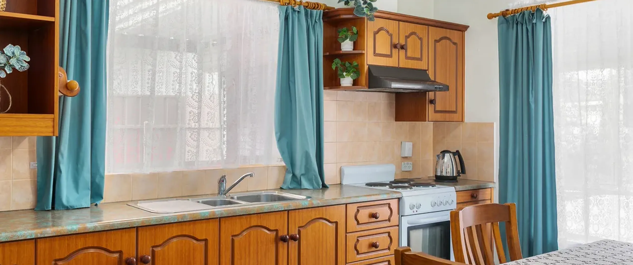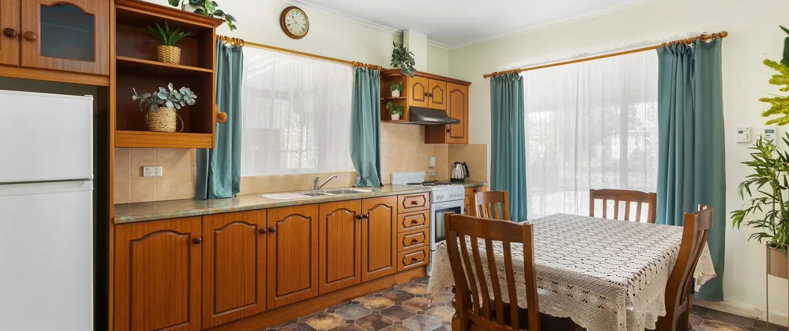 - Original eat-in kitchen with standalone oven and cooktop, complete with an abundance of cupboard and bench space