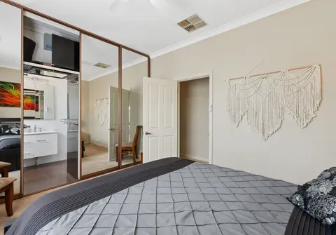 - Spacious master bedroom featuring mirrored built-in robes, modern ensuite with floor to ceiling tiles, and ceiling fan