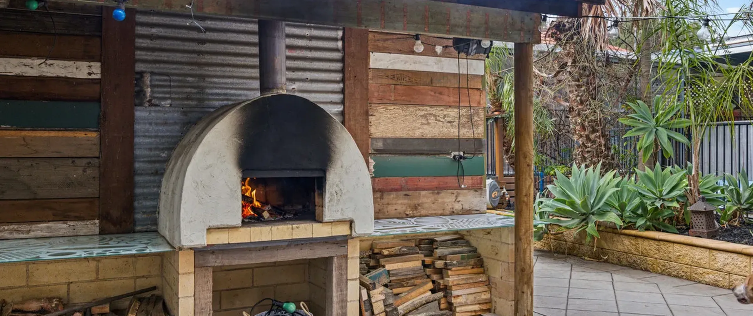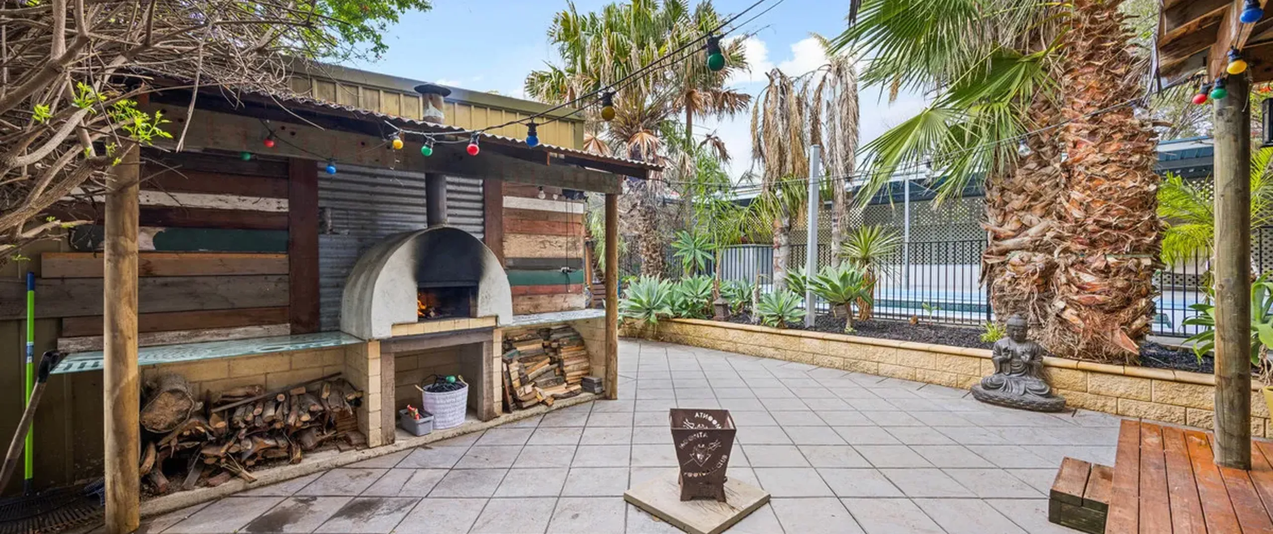 - Tiled in-ground pool with solar heating, wood oven and Balinese hut