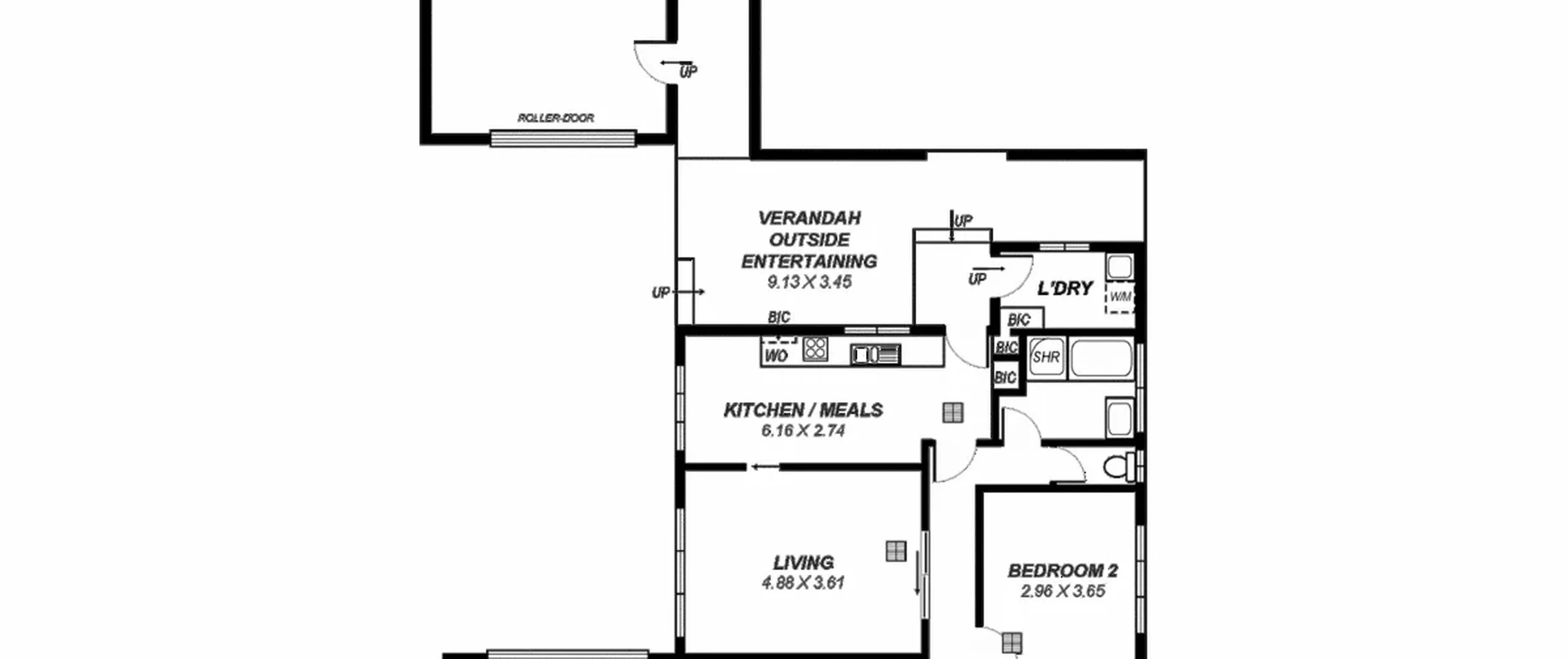 - Large garage with roller door and store rooms