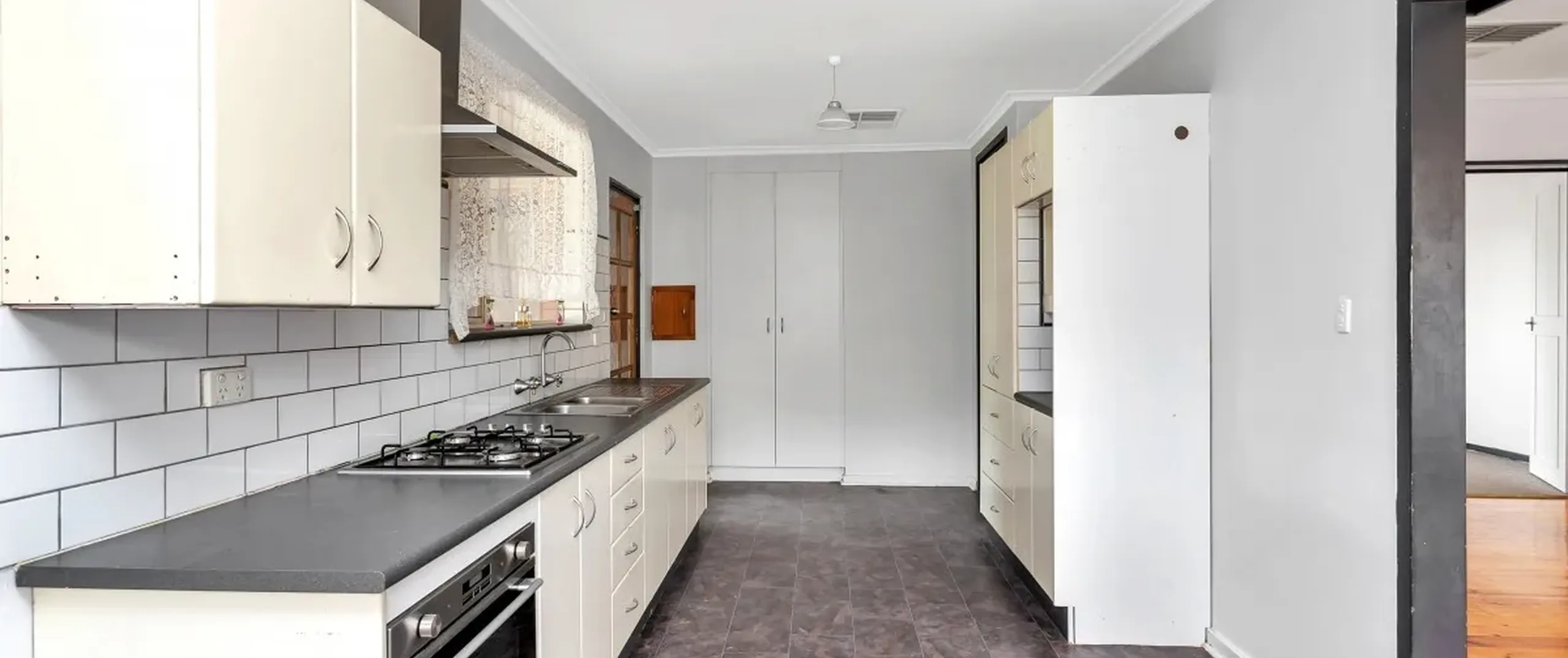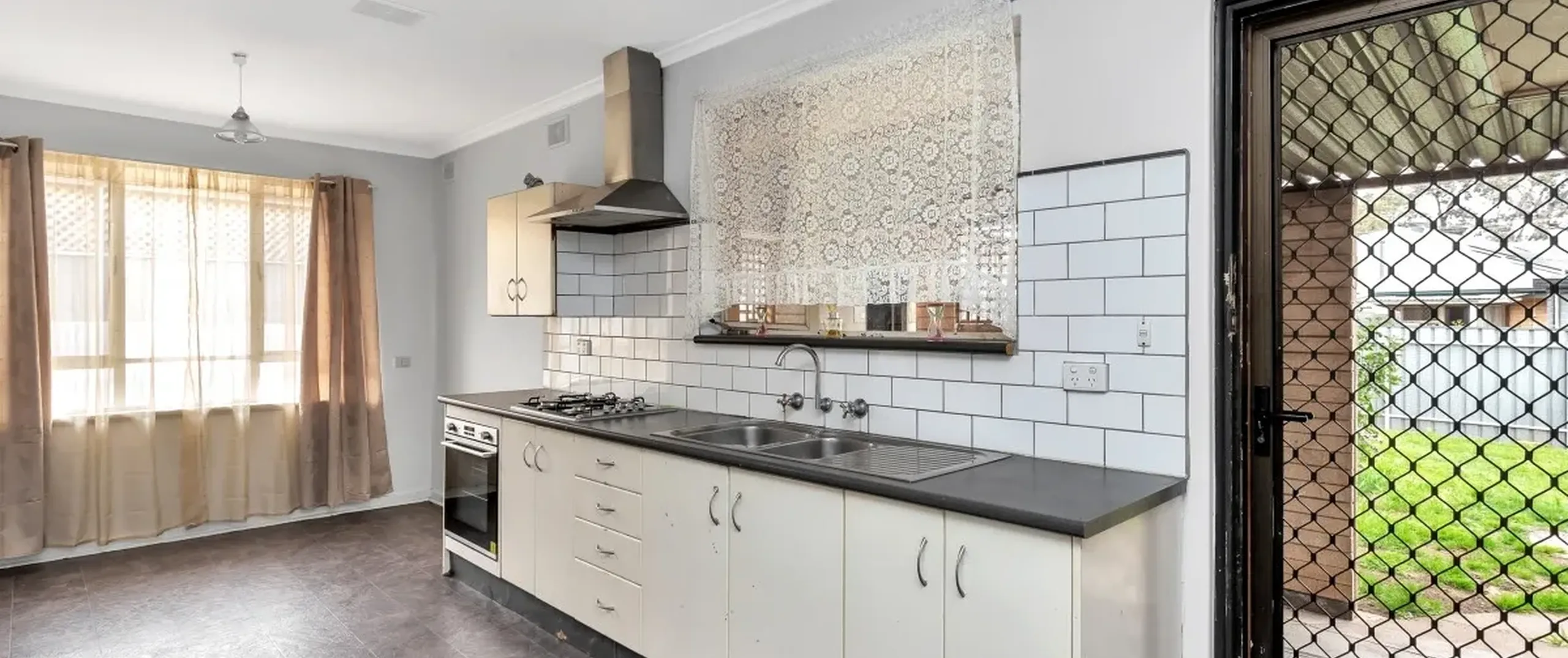 - Rejuvenated kitchen with gas cooking and casual meals area adjacent