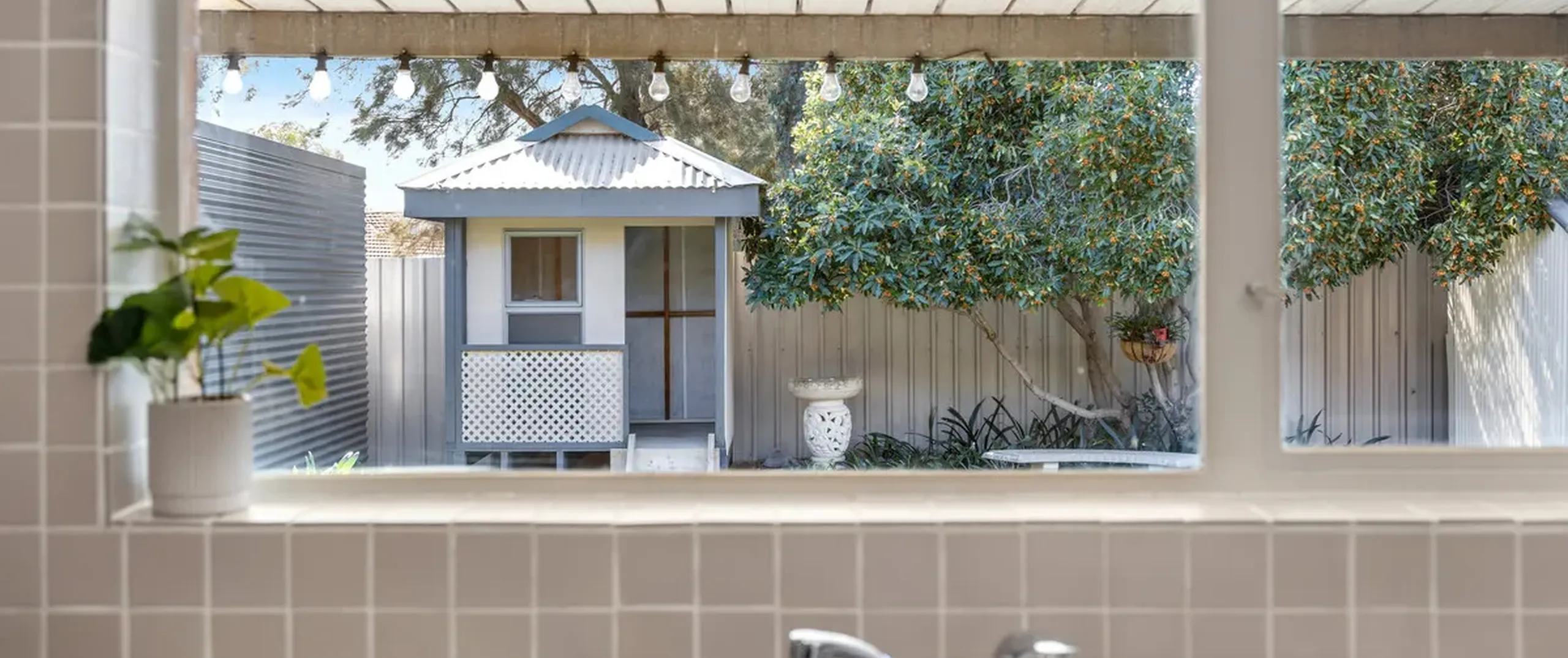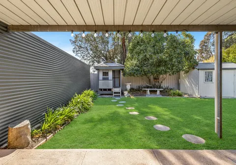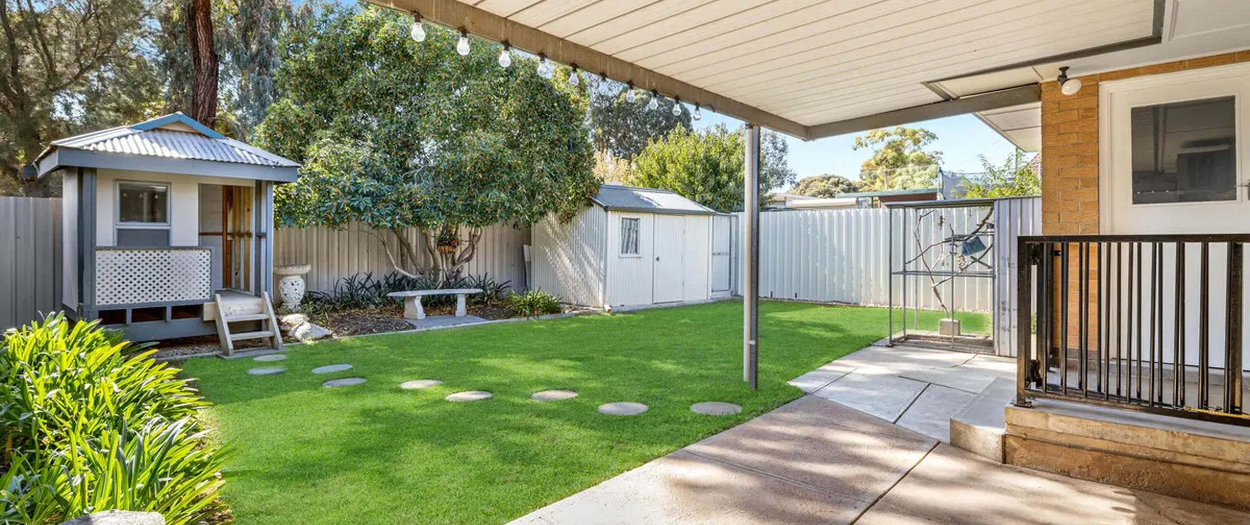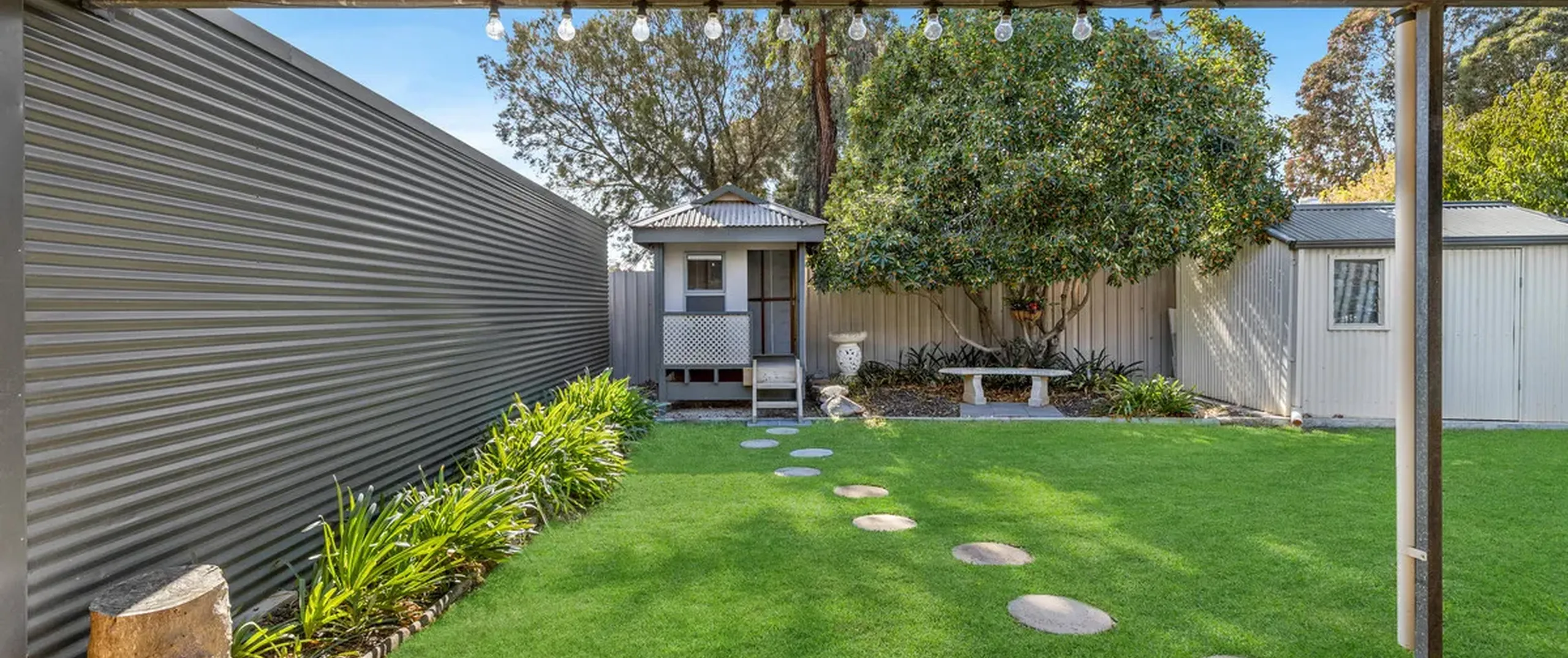 - Fully fenced, established yard with 2x garden sheds and wood shed
