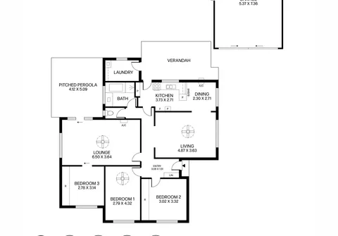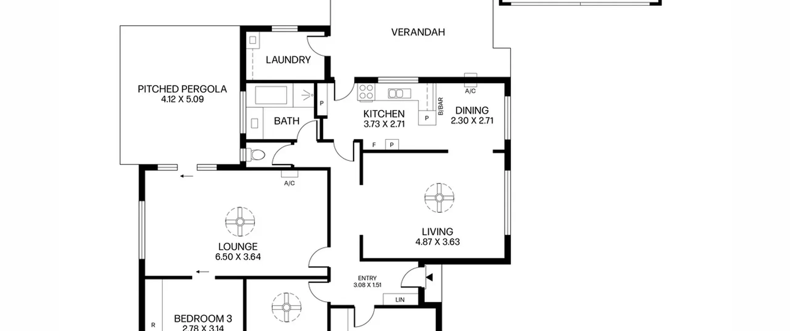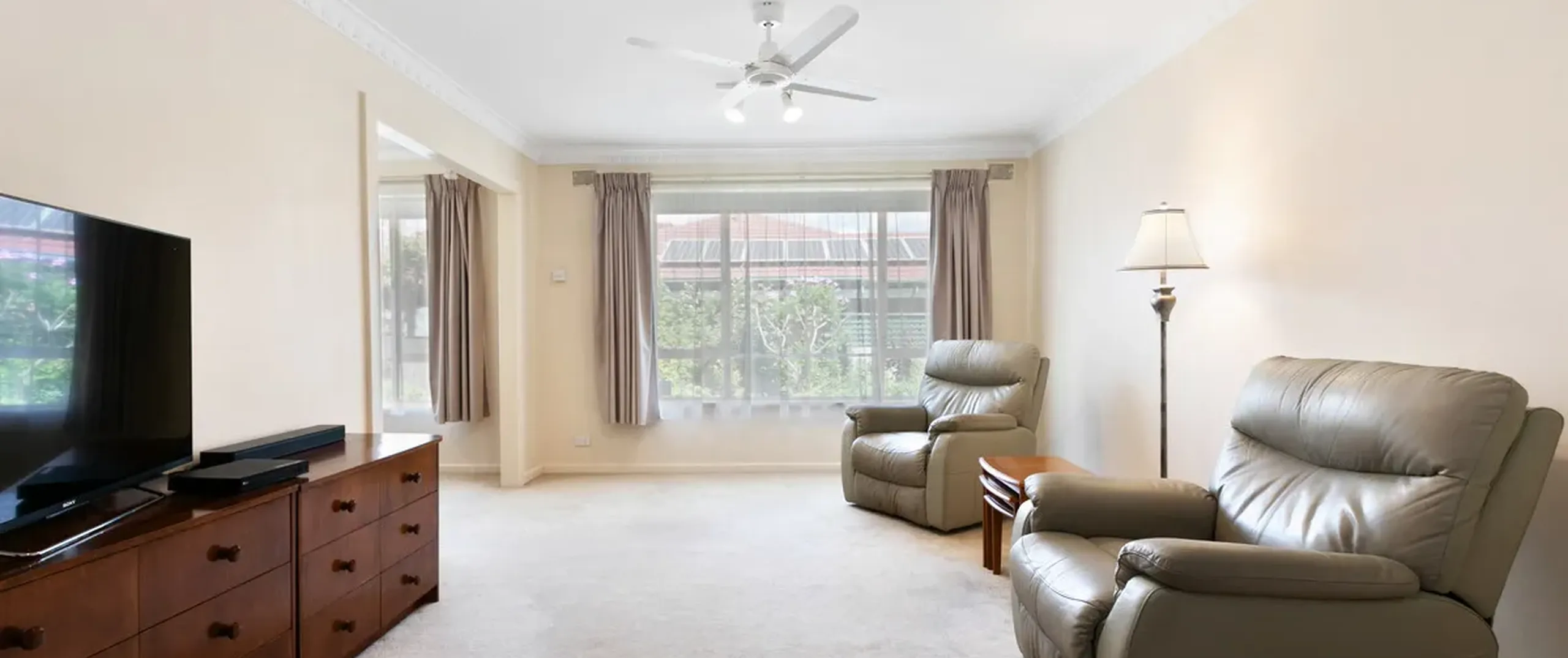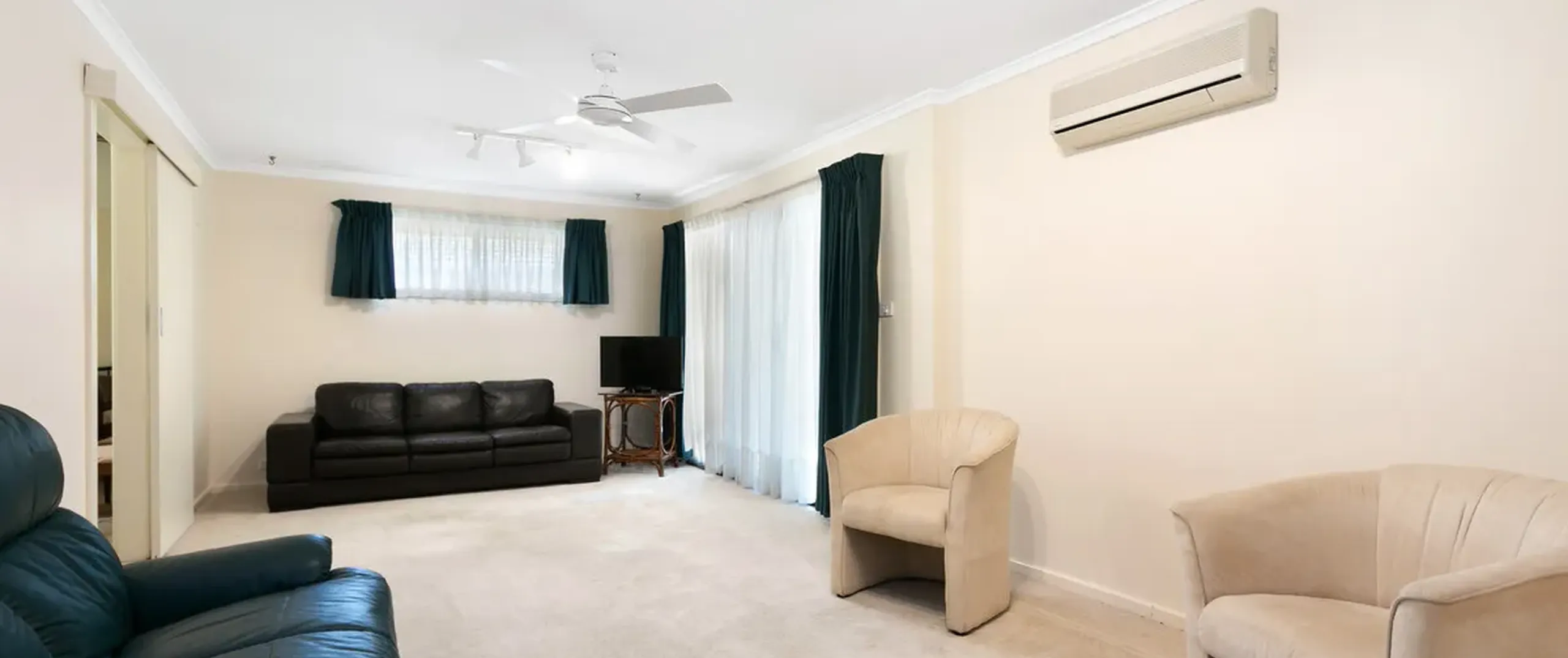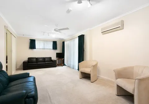 - Light-filled separate lounge room with split system air conditioner, ceiling fan and sliding door access to the pergola