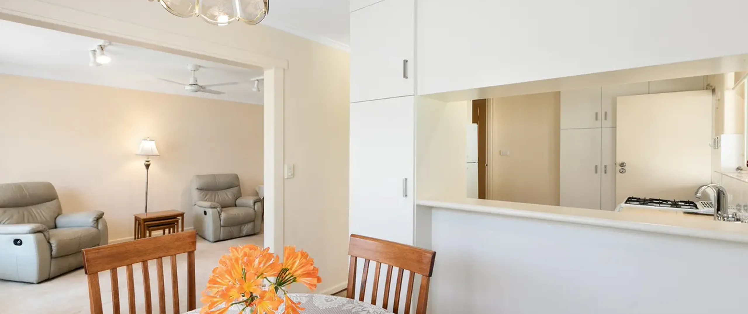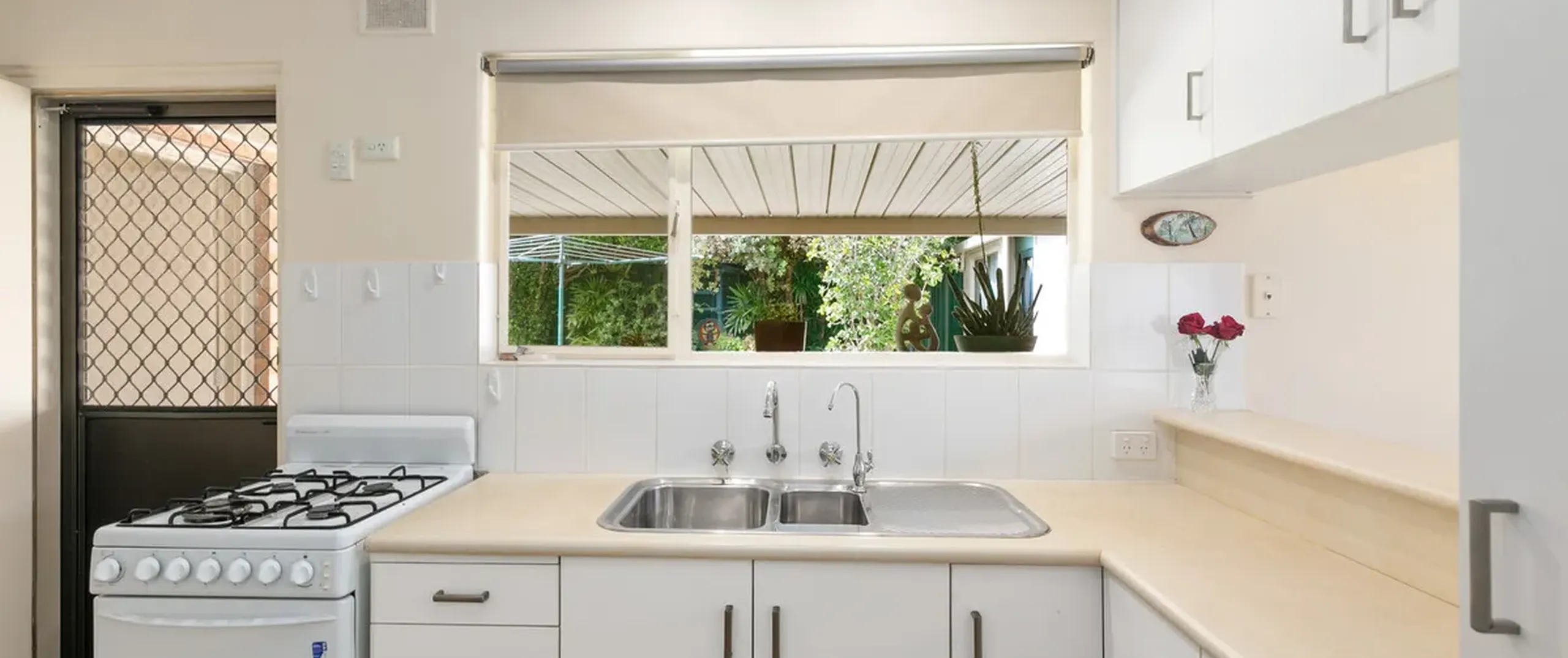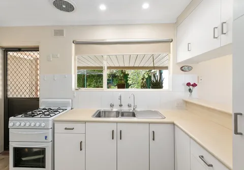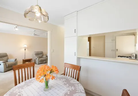 Inside comprises of three generous bedrooms, a light filled lounge room and a practical kitchen with a standalone gas cooktop, ample storage and bench space plus a servery to the dining area.