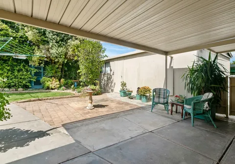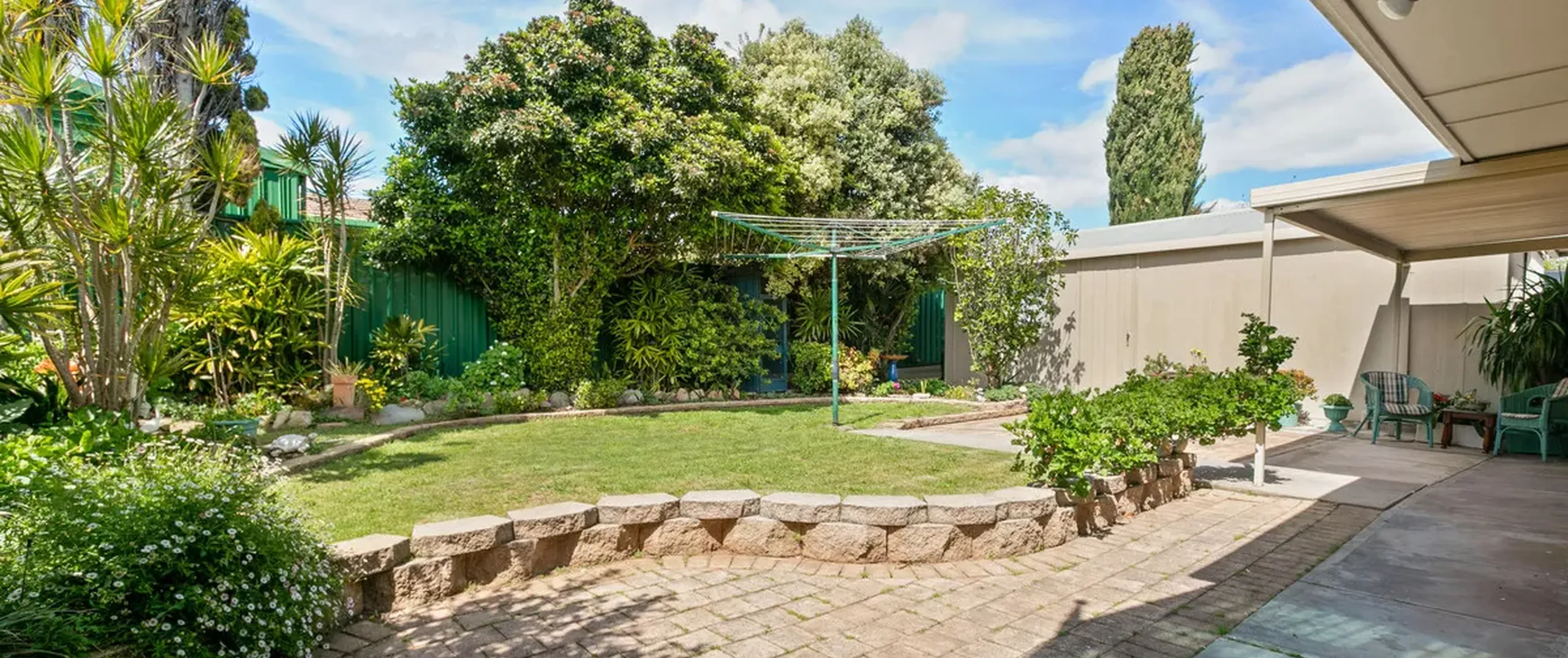 - Good sized backyard with well-established gardens