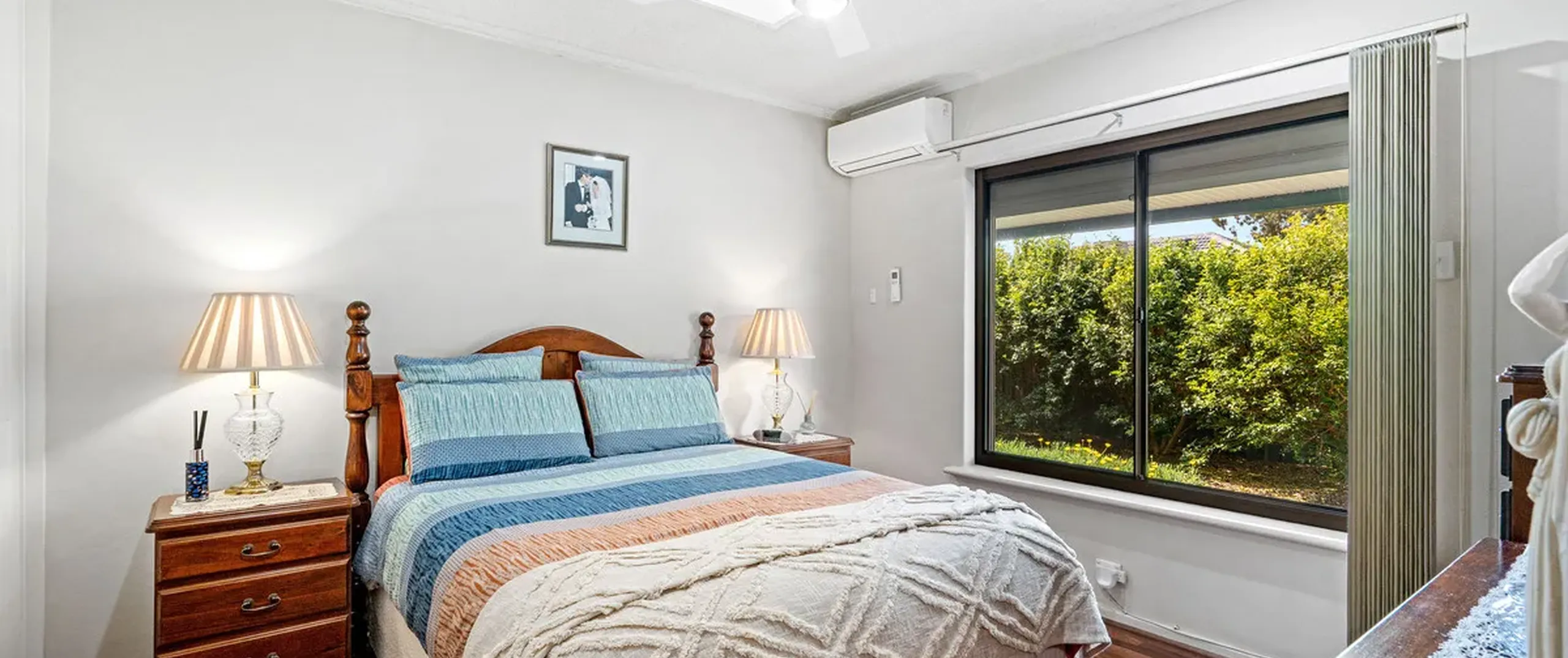 - Generous main bedroom with ceiling fan, split system air conditioner and built-in robe