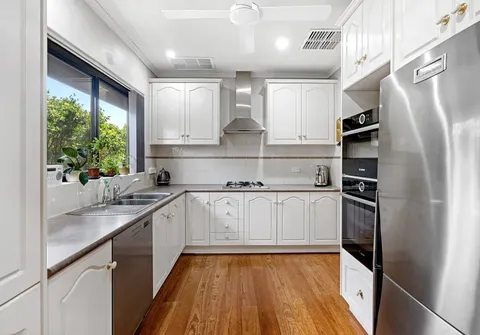 - Bright white kitchen with stainless steel dishwasher, complete with near new appliances including self cleaning Bosch pyrolytic oven and Miele gas cooktop, pantry, ceiling fan and adjoining access to the dining room