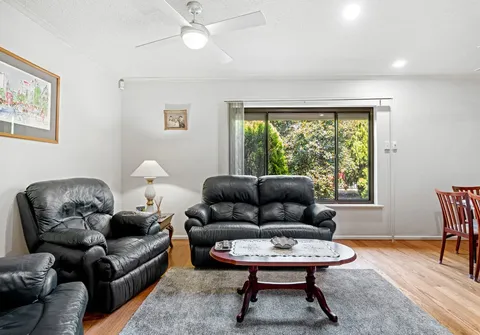 - Light-filled open living and dining with ceiling fans and charming combustion heater for those cooler months
