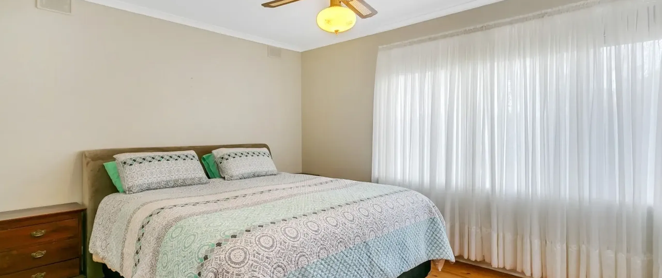 - Large master bedroom with beautiful polished floorboards, ceiling fan, built-in robe and ensuite
