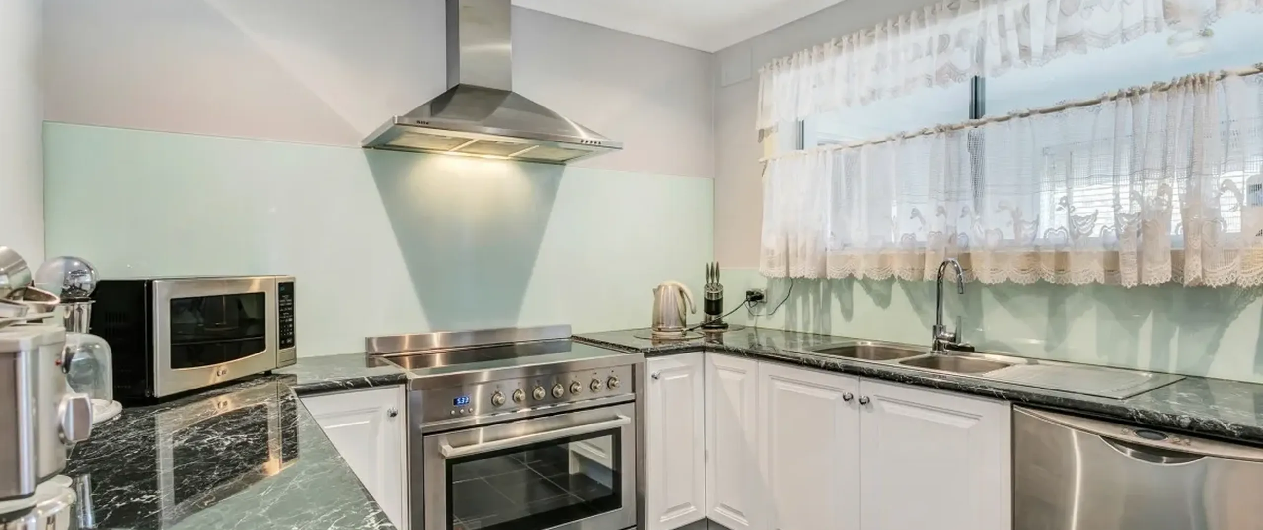 - Modern, stylish kitchen with stainless steel appliances, ample bench and cupboard space and walk-in pantry
