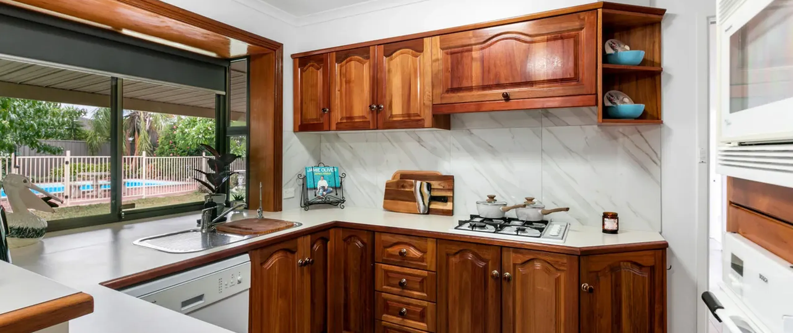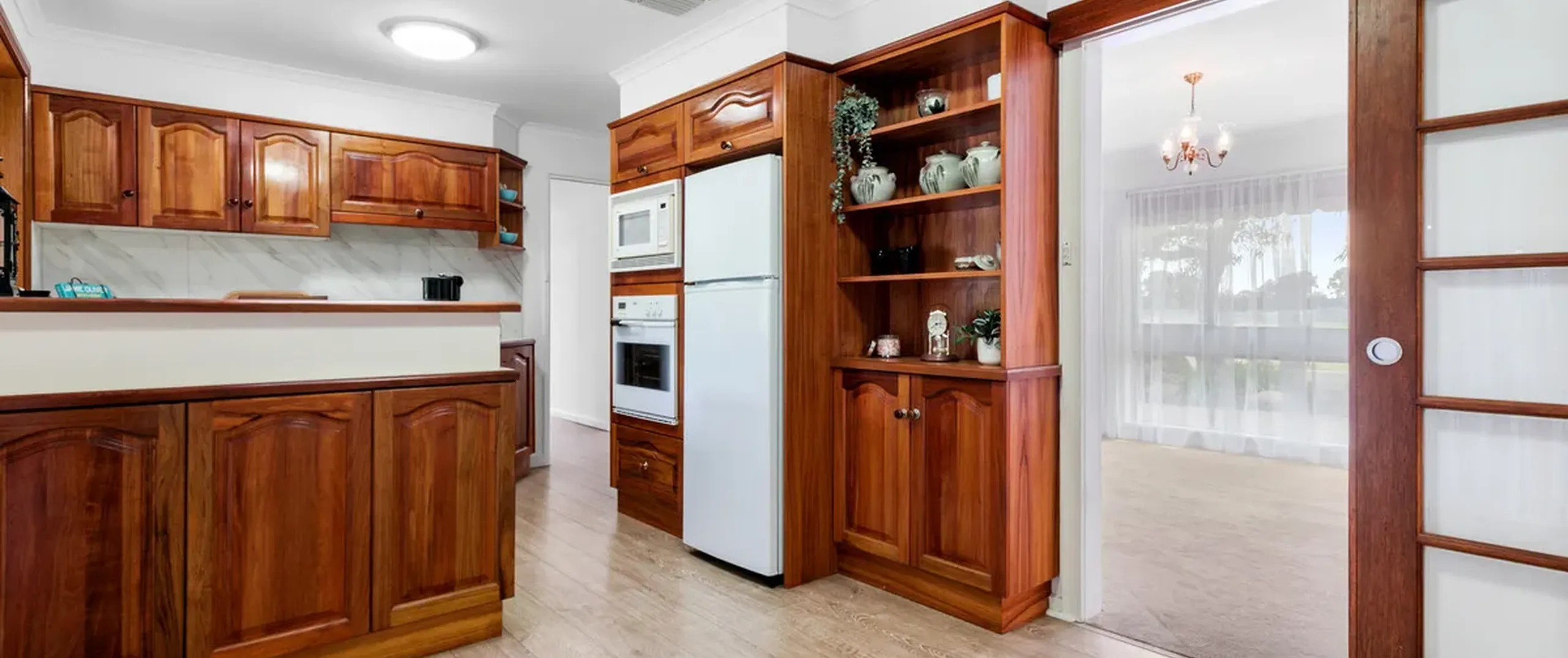 - Timber kitchen with dishwasher, gas cook top, walk in pantry and ample cupboard space