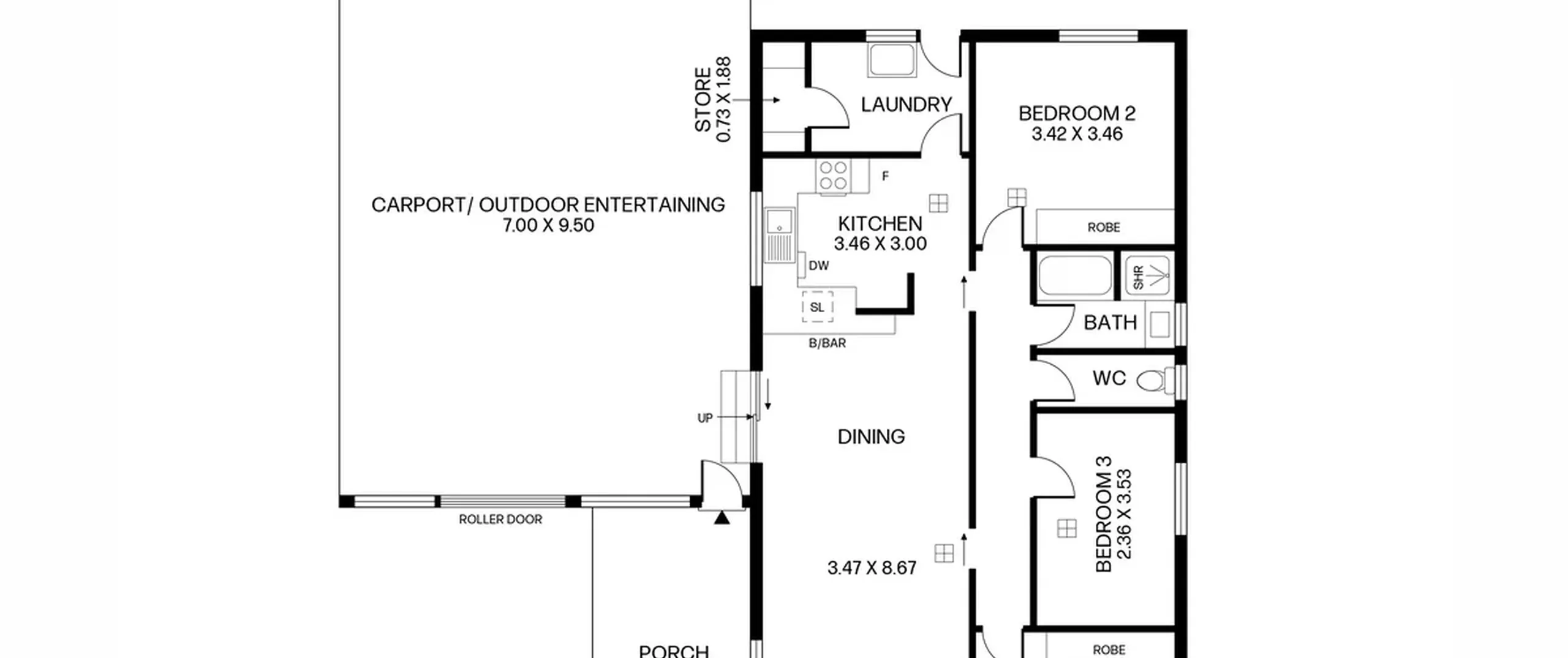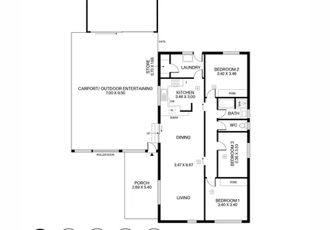 - Large carport with roller door also suitable for outdoor entertaining