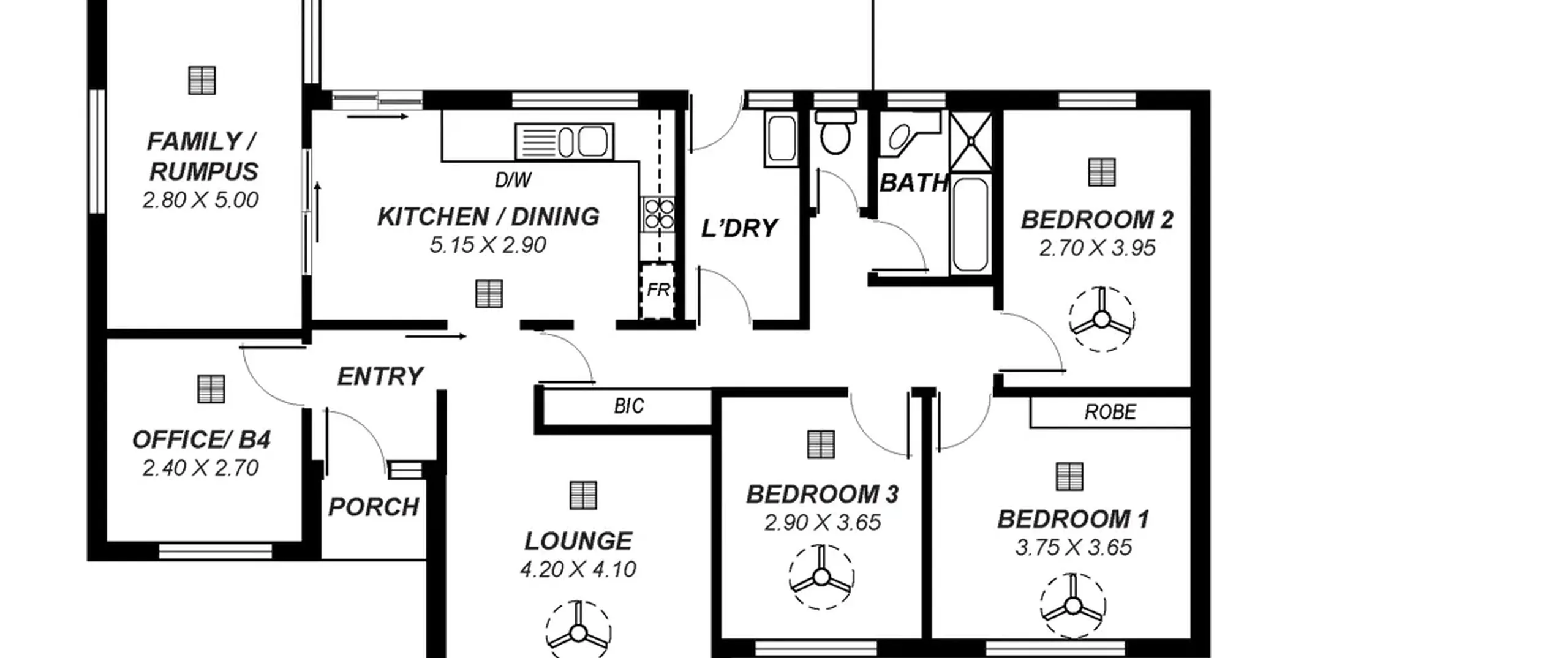 - 3 Good sized bedrooms, all with ceiling fans + built in robe to bedroom 1