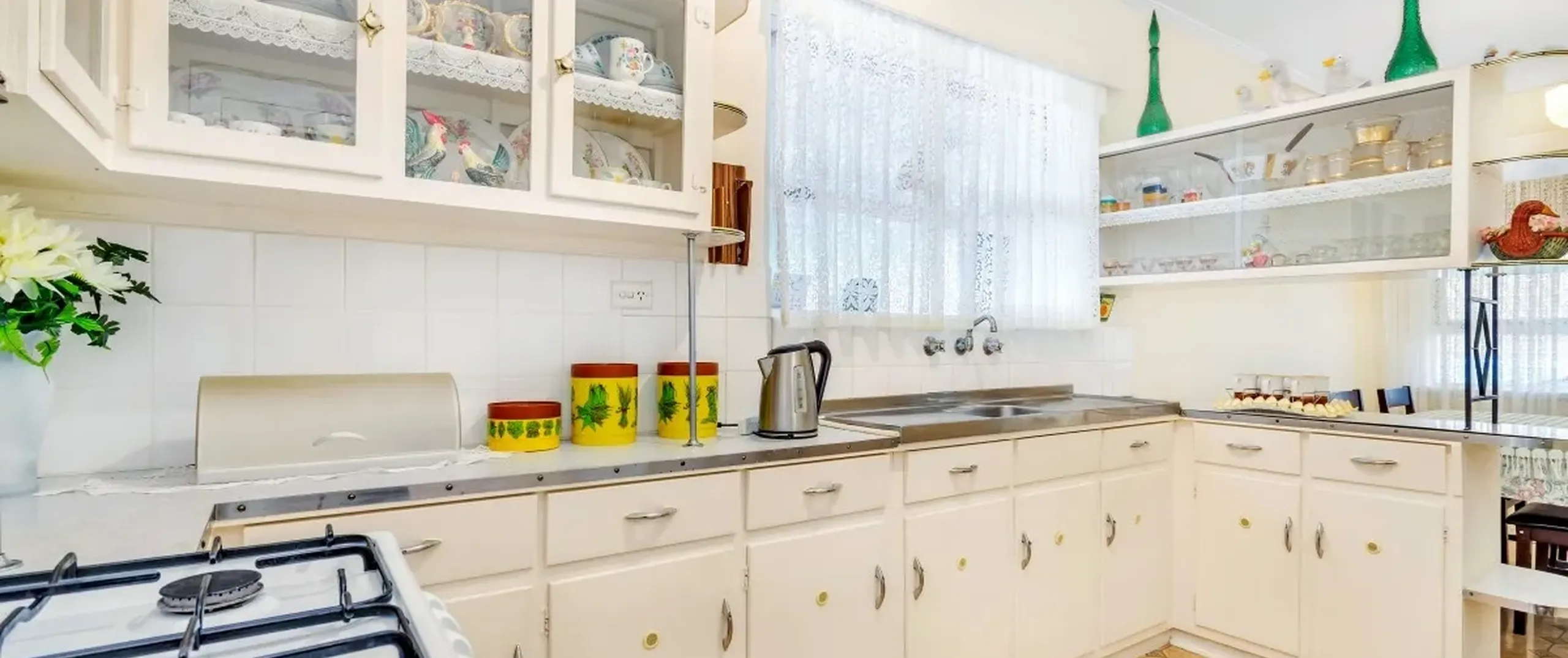 - Original kitchen with freestanding gas cooker and ample bench and cupboard space