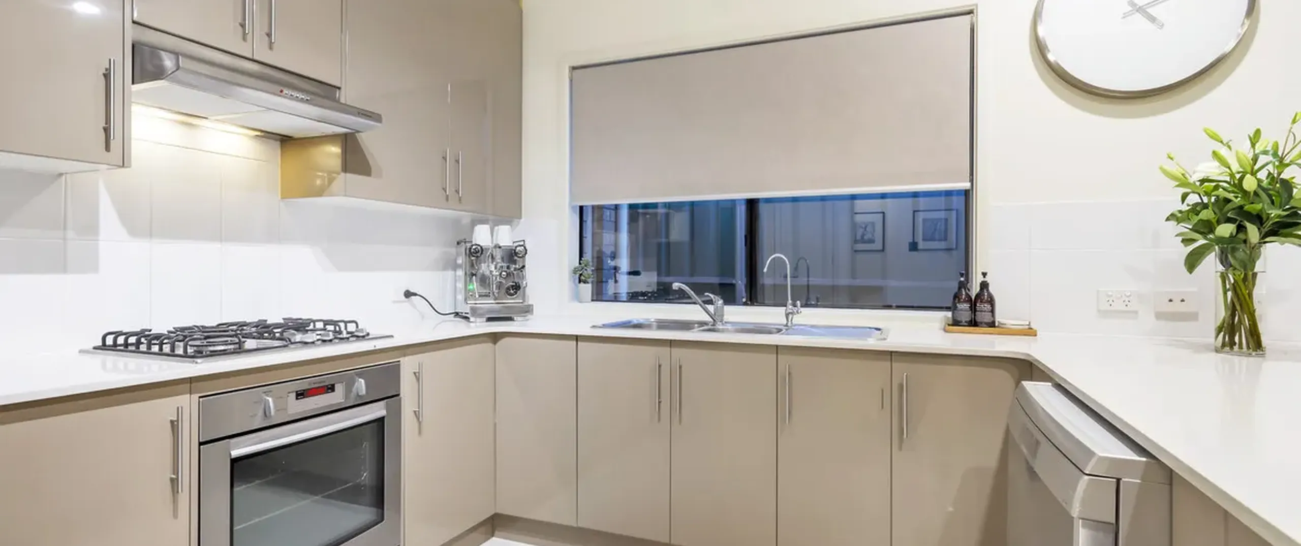 - Modern, stylish kitchen with gas cooktop, dishwasher, ample bench and cupboard space and walk-in pantry