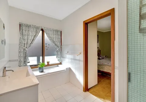 - Large master bedroom with built-in robe, ceiling fan and direct access to main bathroom