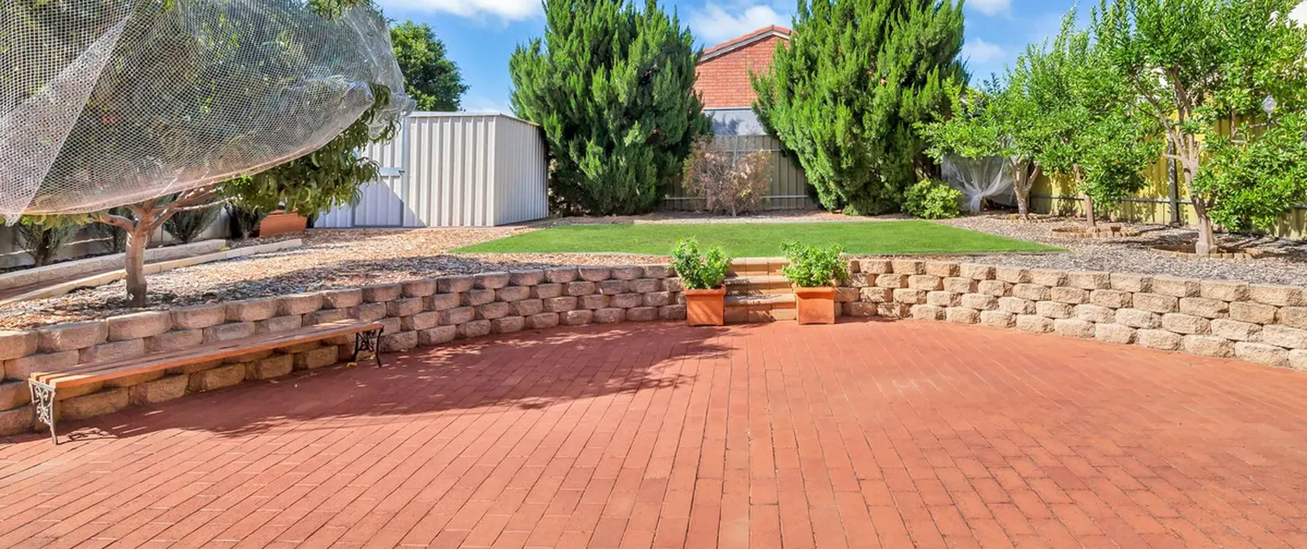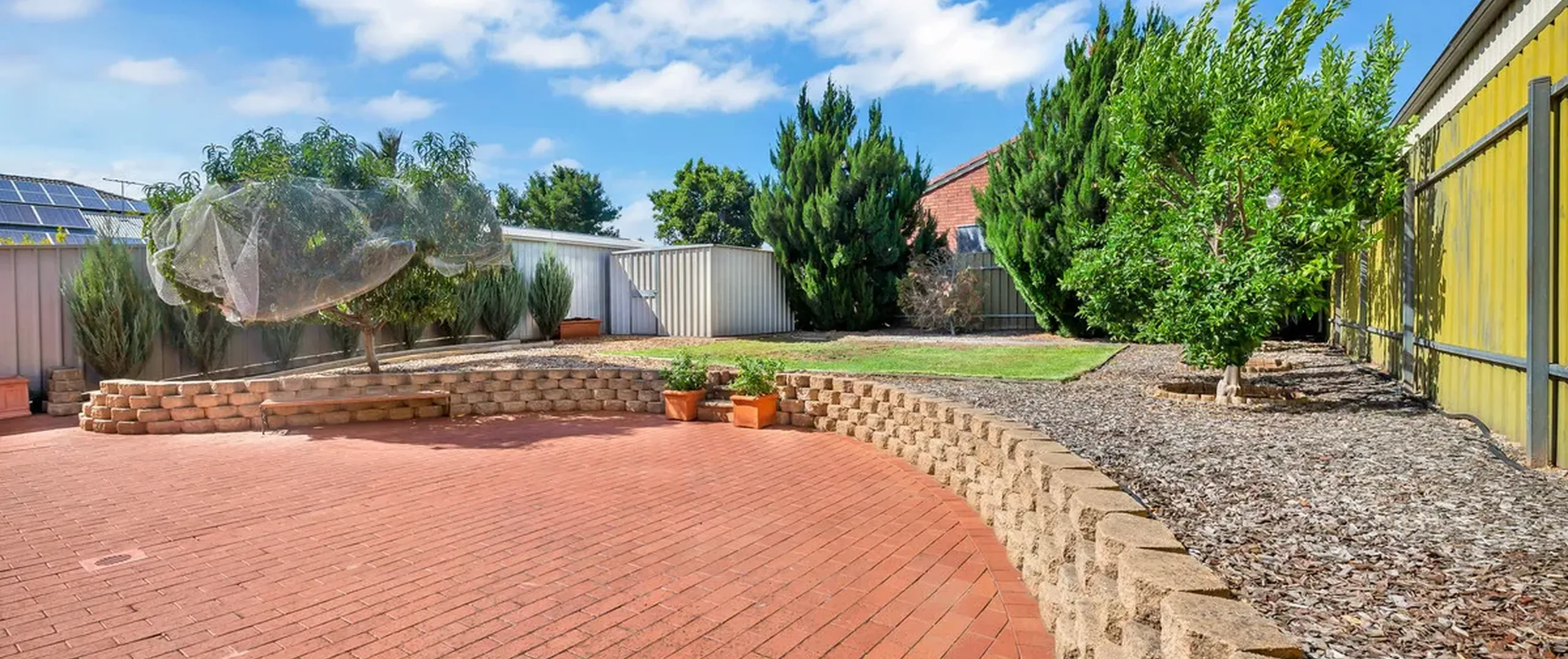 - Fully fenced, established yard with garden shed