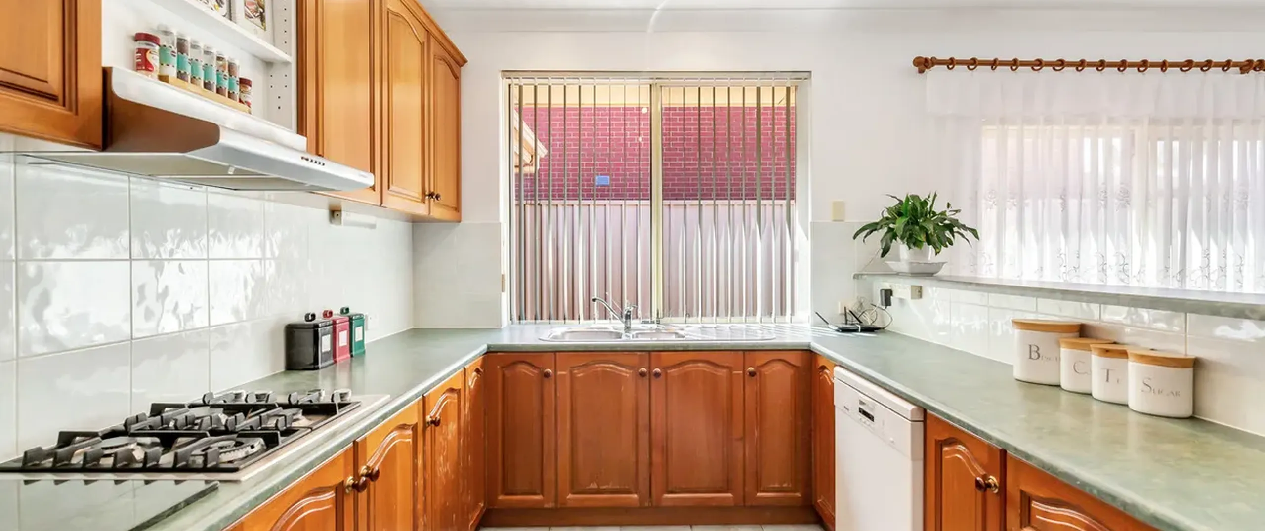 - Practical kitchen with walk-in pantry, ample cupboard space and gas cooking