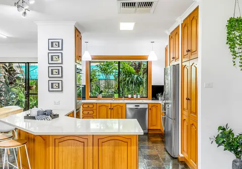 - Quality timber kitchen with Ceasar Stone bench tops, glass splash back, breakfast bar, Smeg Dishwasher, Bosch 900mm stovetop and rangehood, ample cupboard and bench space