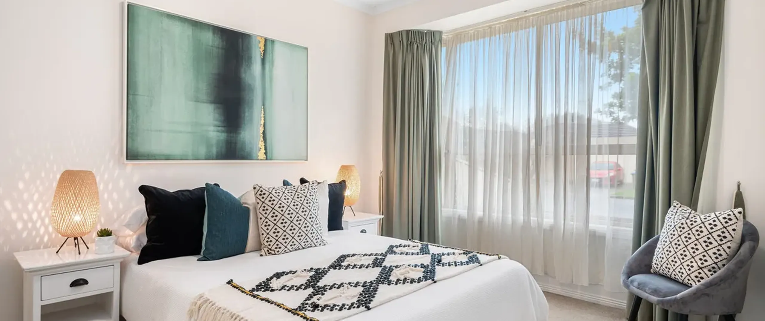 - Light filled bedroom one with walk-in robe, ensuite and large bay window