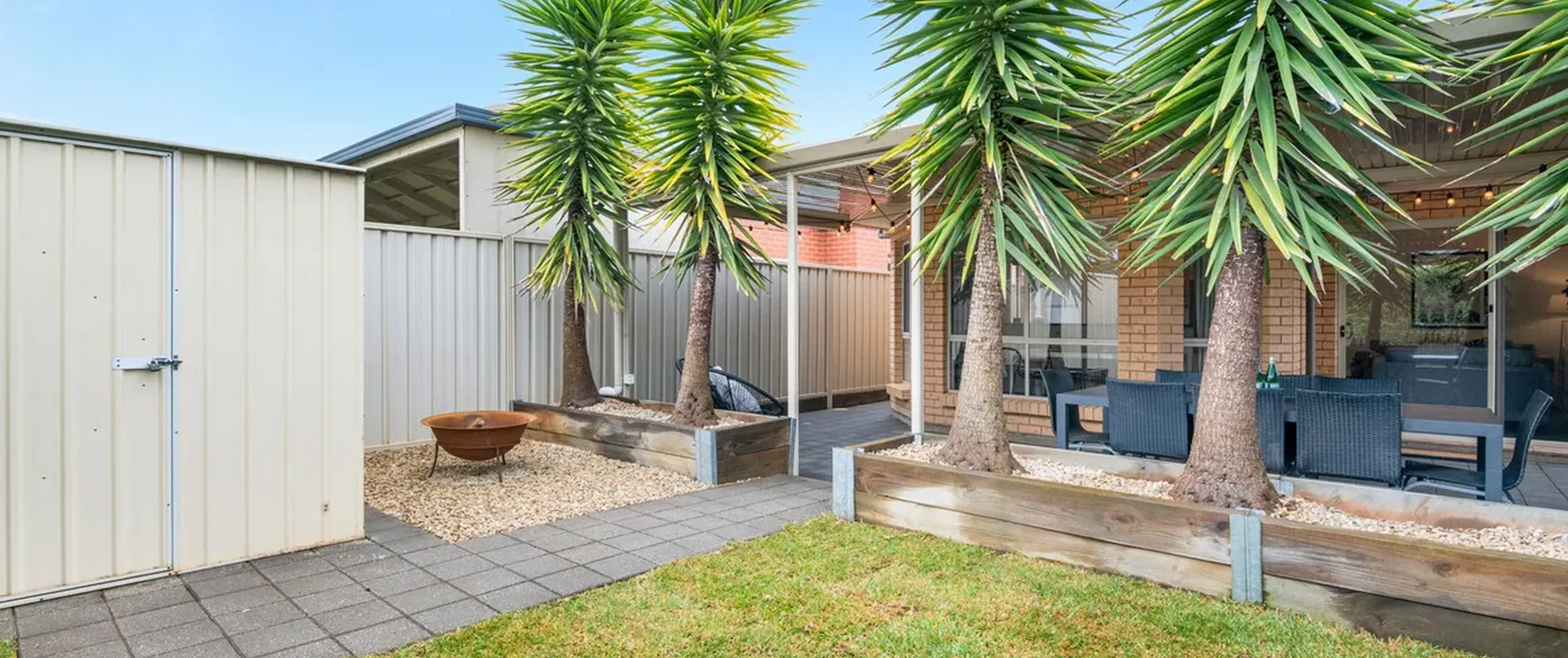 - Fully fenced, established backyard with garden shed and rainwater tank