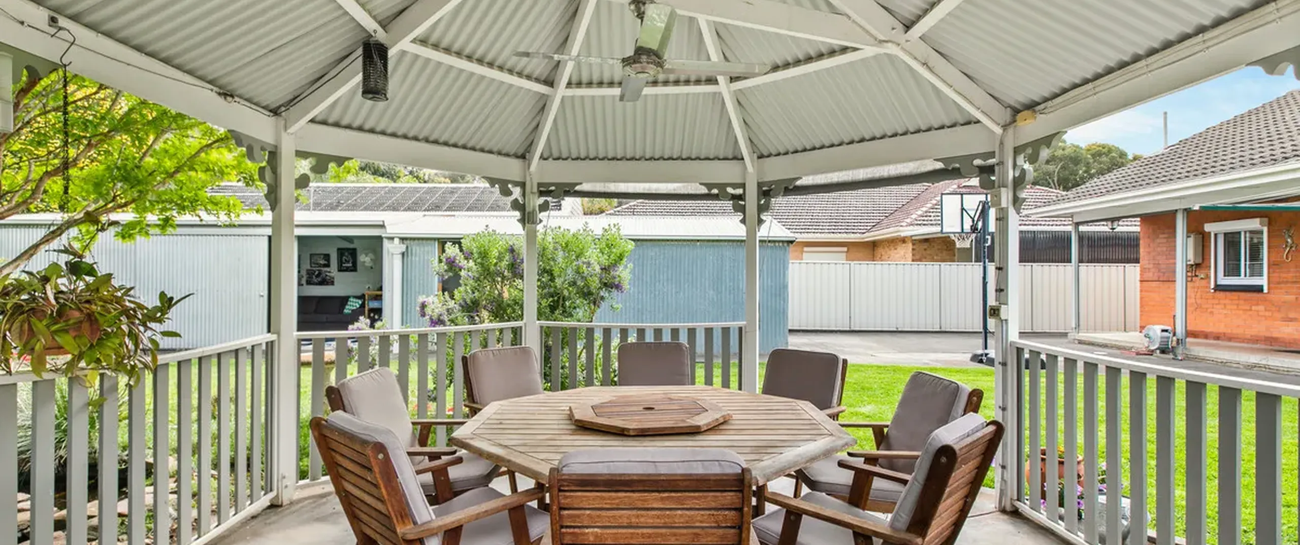 - Charming pergola/rotunda with ceiling fan, perfect for hosting guests