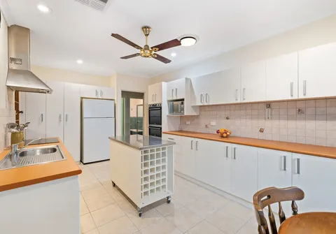 Beyond the kitchen, you'll find a bright and airy family room, thoughtfully equipped with a split-system air-conditioning, providing a relaxing space to unwind and enjoy quality family time. The main bathroom caters to the needs of the household, while a separate toilet adds a practical touch.