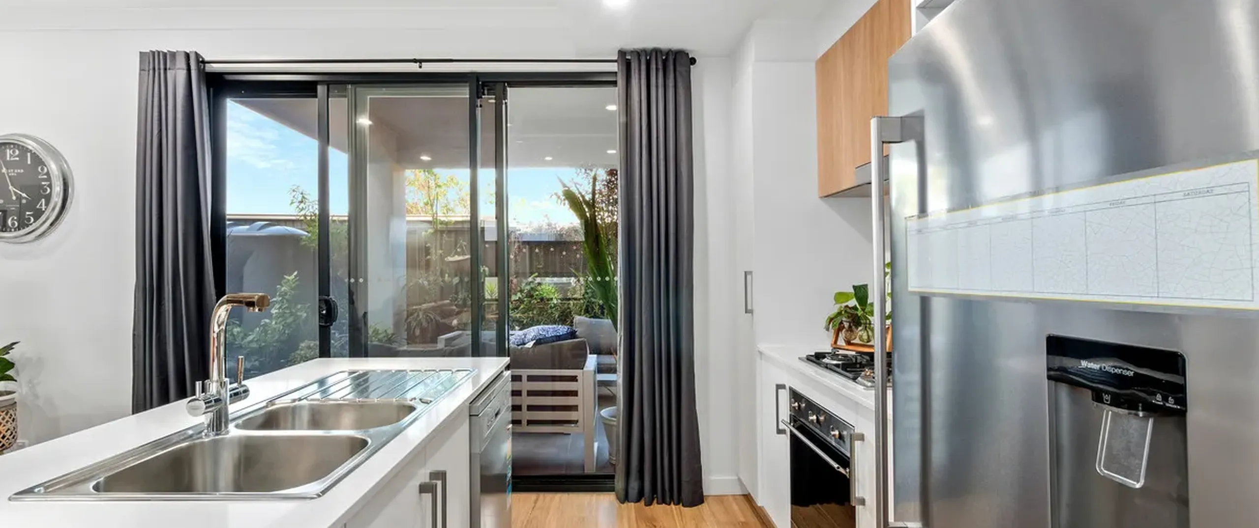 - Light filled, contemporary living, dining and kitchen with glass sliding doors opening to the alfresco