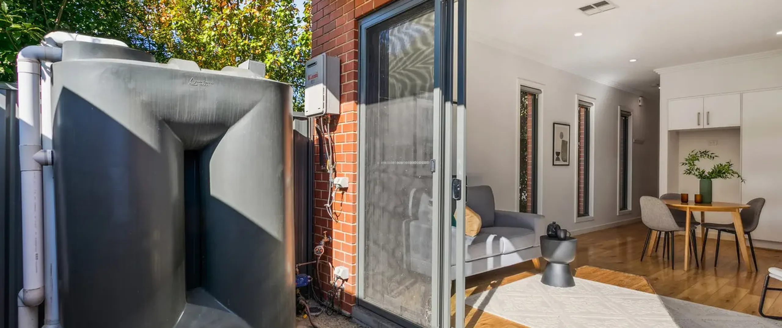 - Low-maintenance rear courtyard with rainwater tank and clothesline