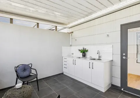 - Covered roof terrace with kitchen including sink and cupboards, ideal for entertaining guests