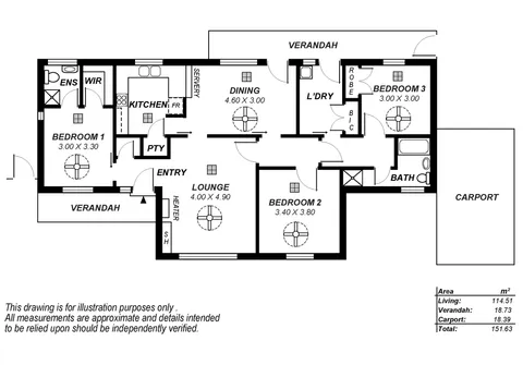 - Master bedroom with walk-in robe, ensuite and ceiling fan