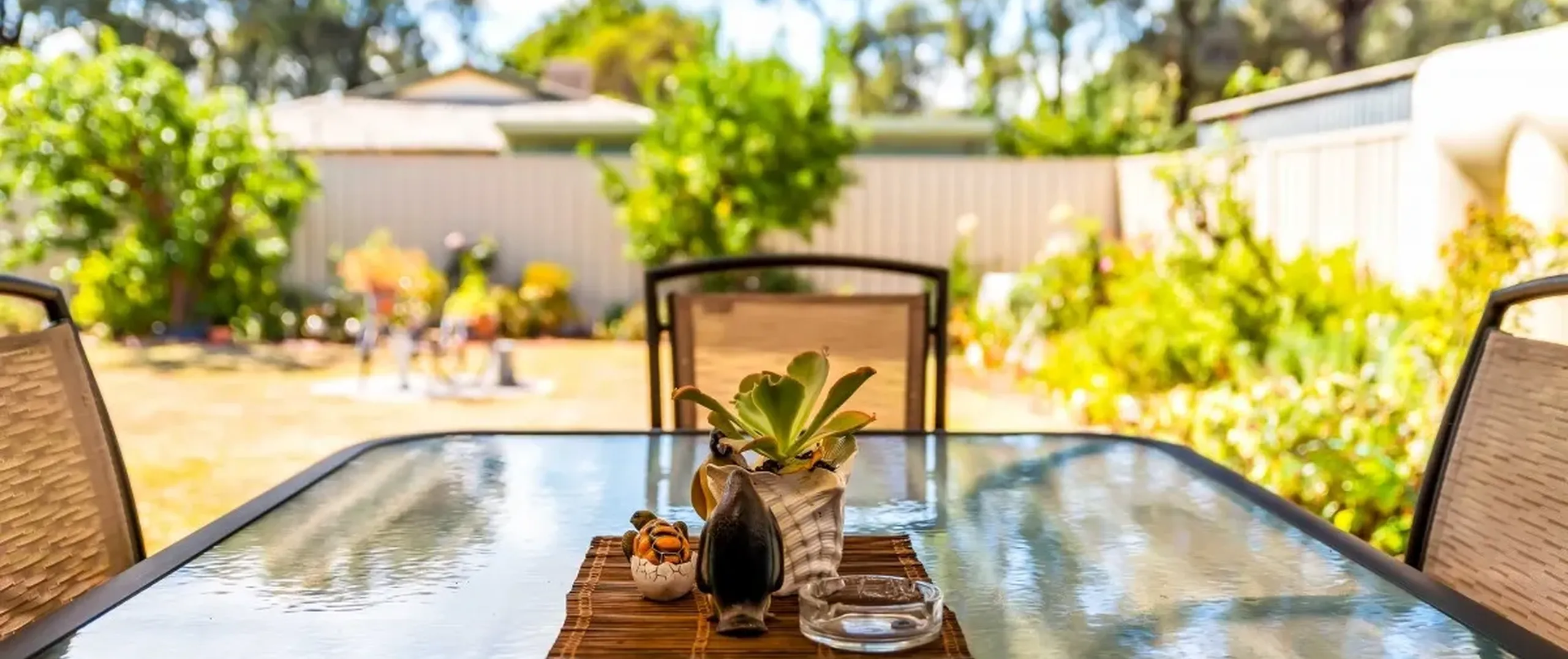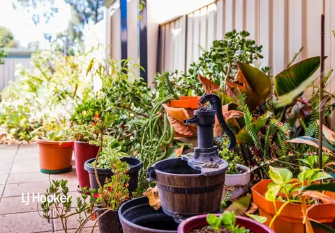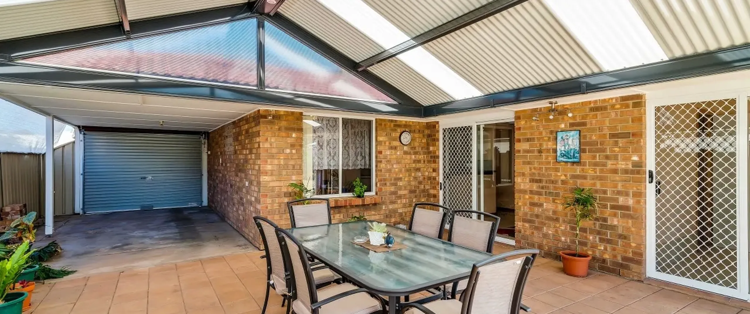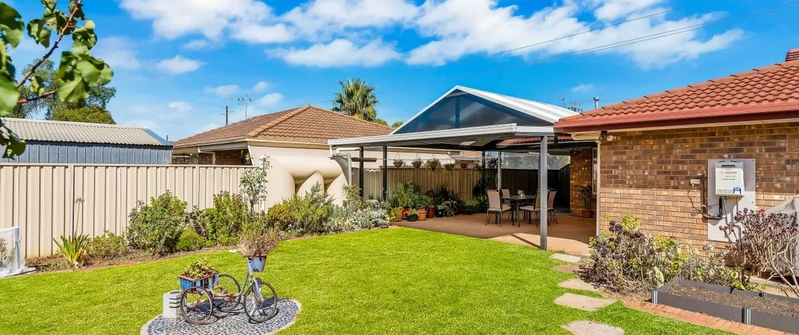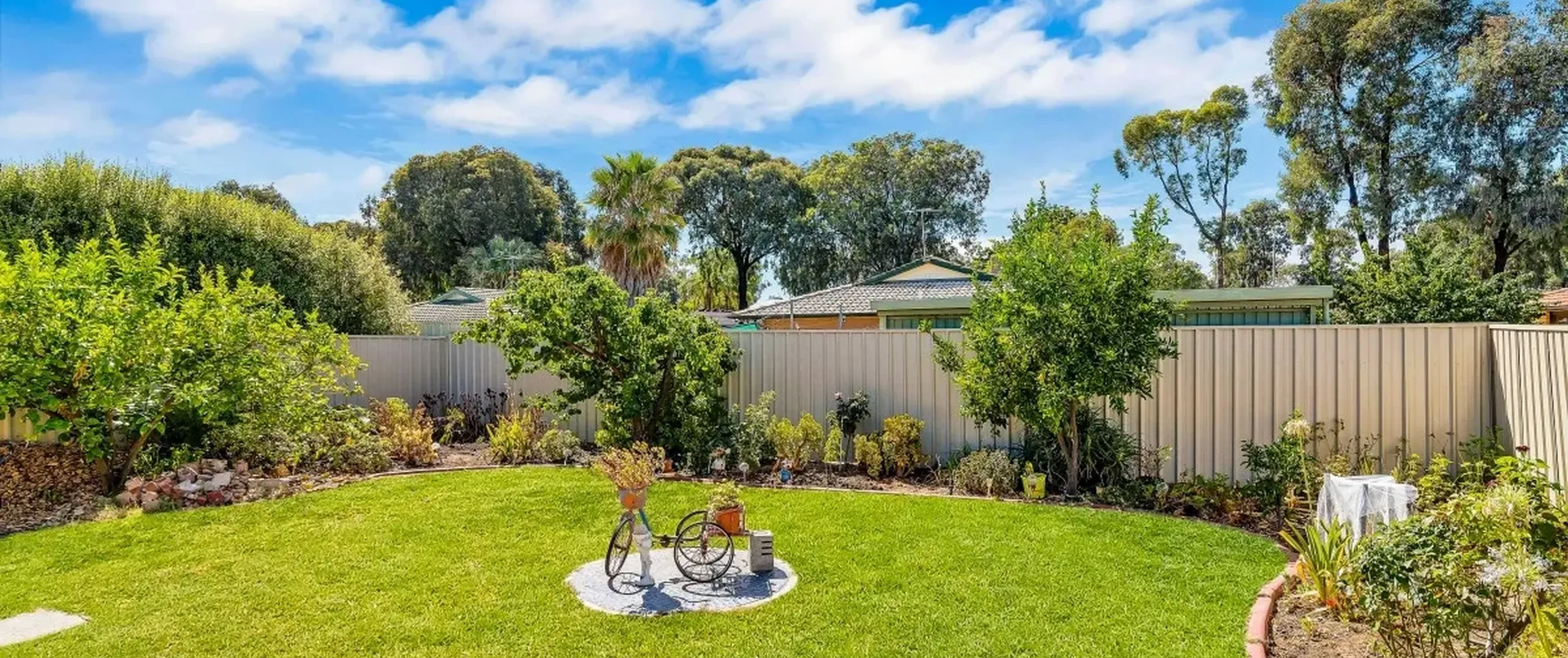 - Large, fully fenced backyard with established fruit trees and garden shed