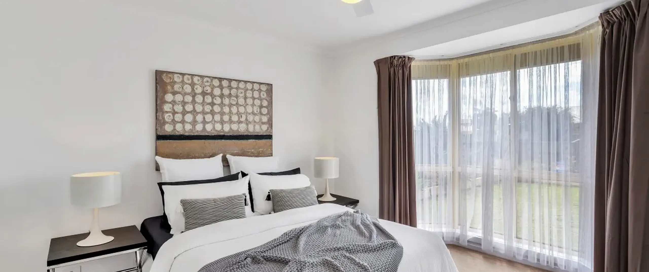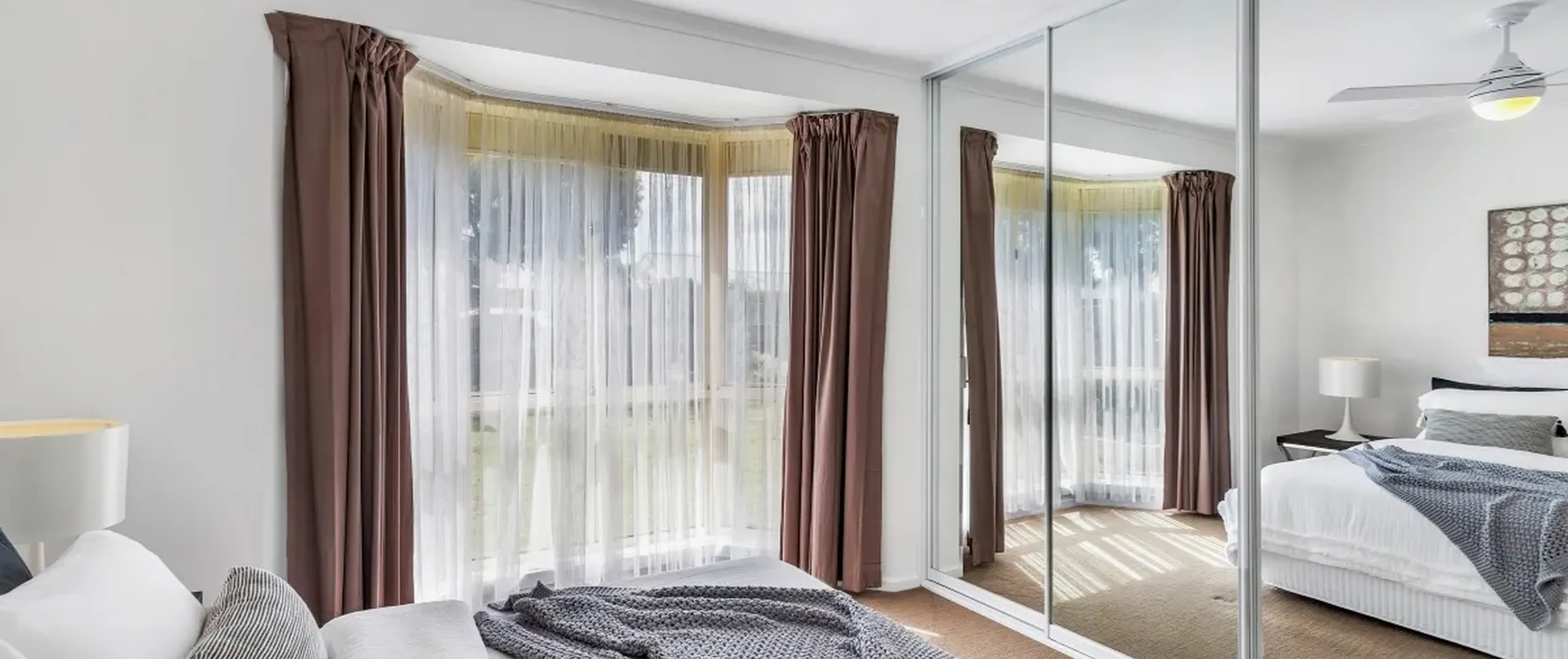 - Large master bedroom with built-in robe, ceiling fan and beautiful bay window