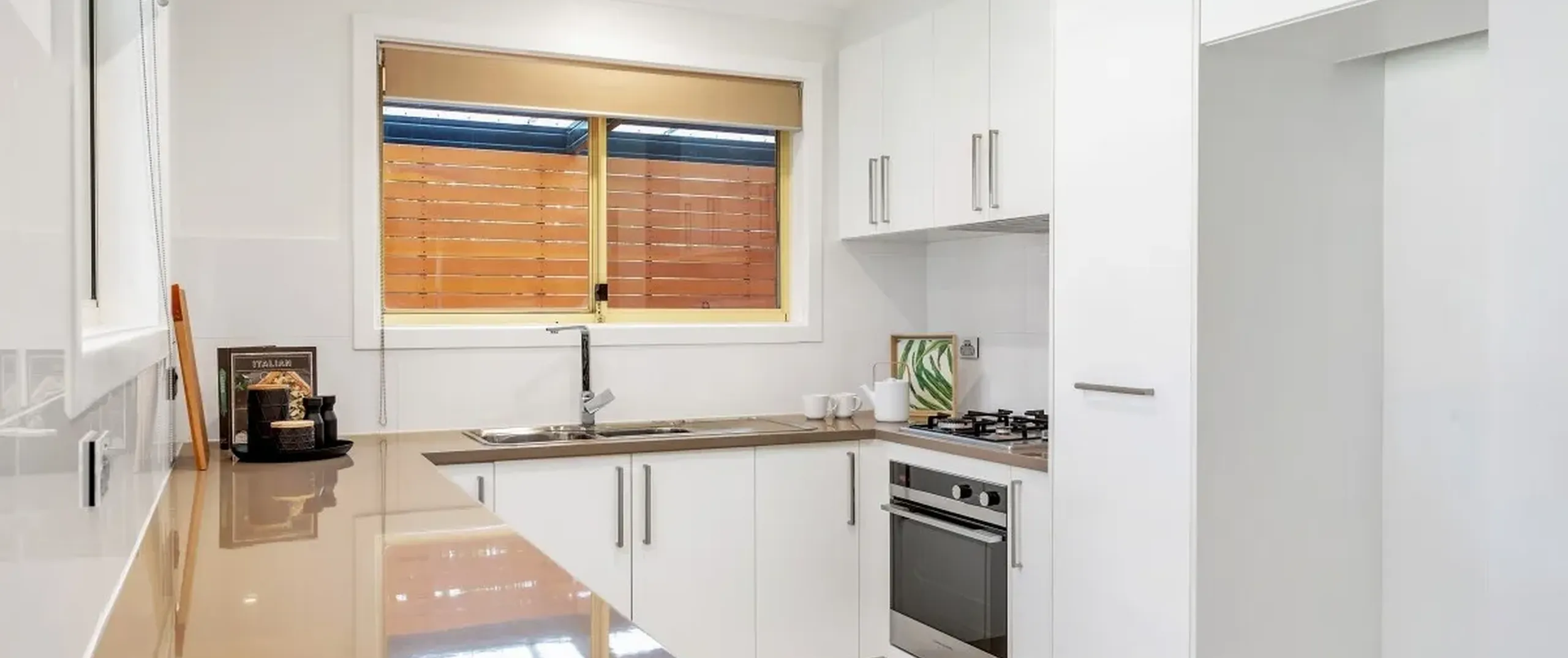 - Modern kitchen with ample cupboard and bench space, quality stainless steel appliances