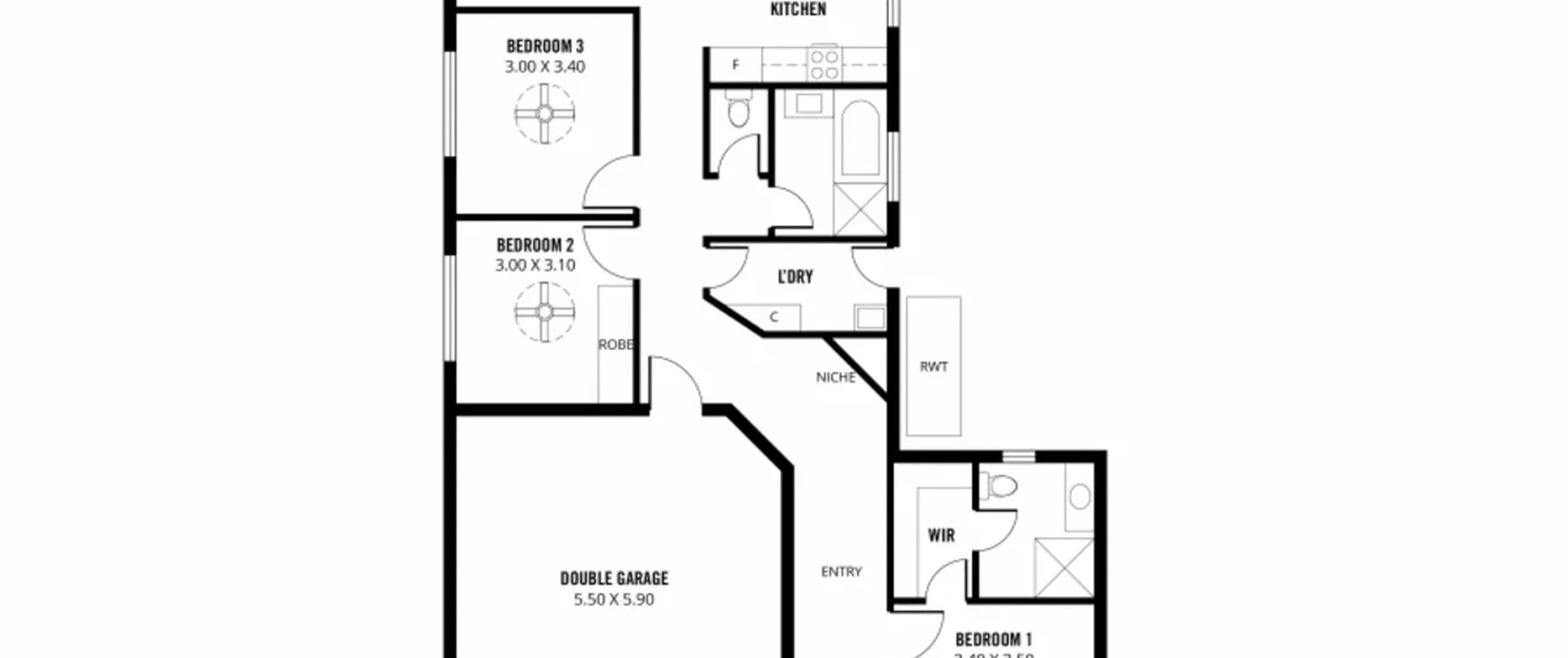 - Good sized bedrooms 2 and 3 with ceiling fans, bedroom 2 with built-in robe