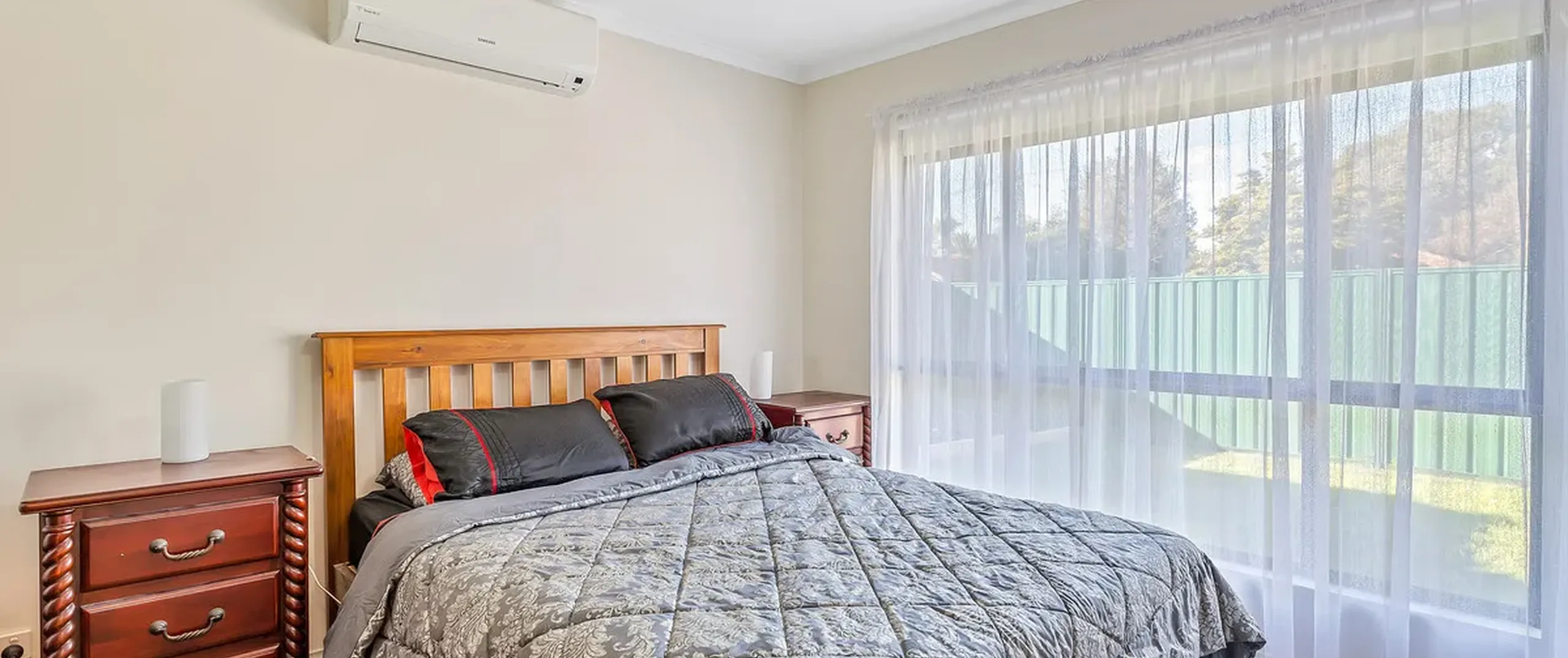 - Master bedroom with walk-in robe, ensuite, split system reverse cycle air conditioner and ceiling fan