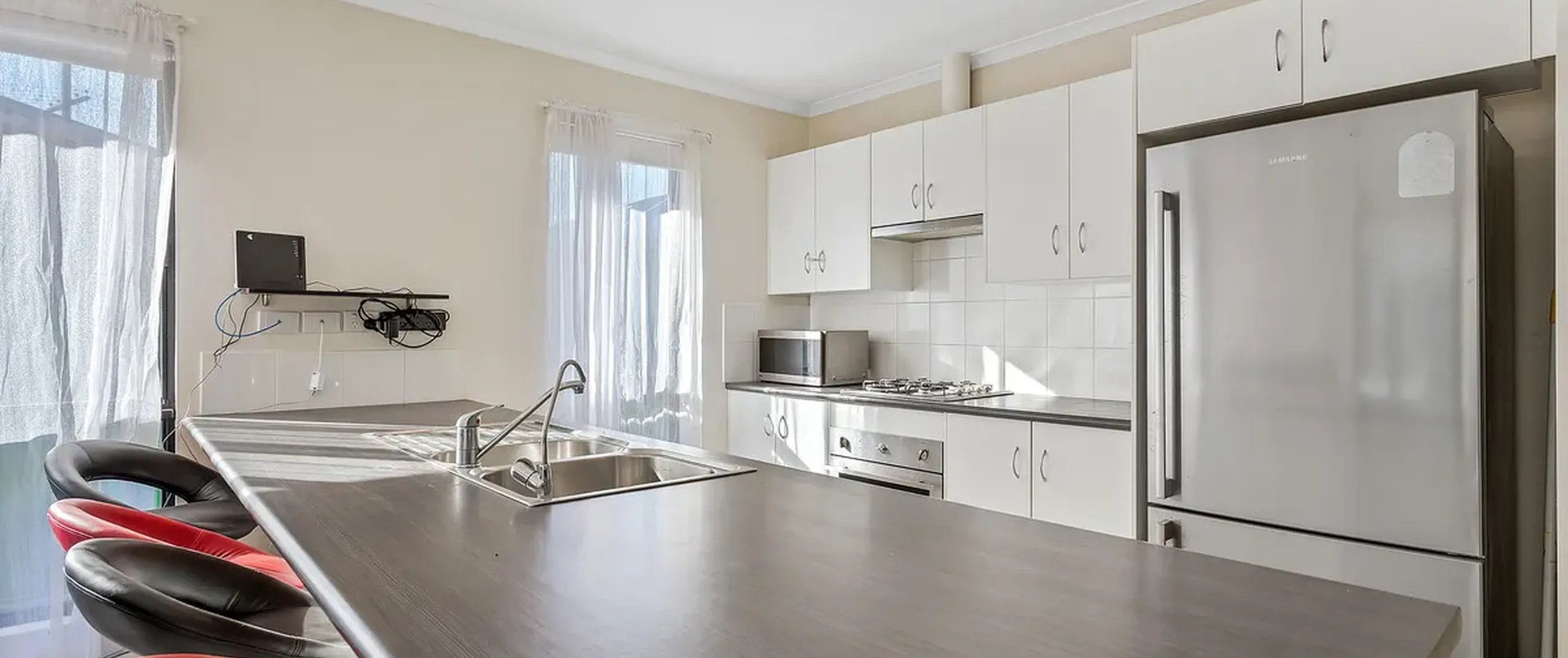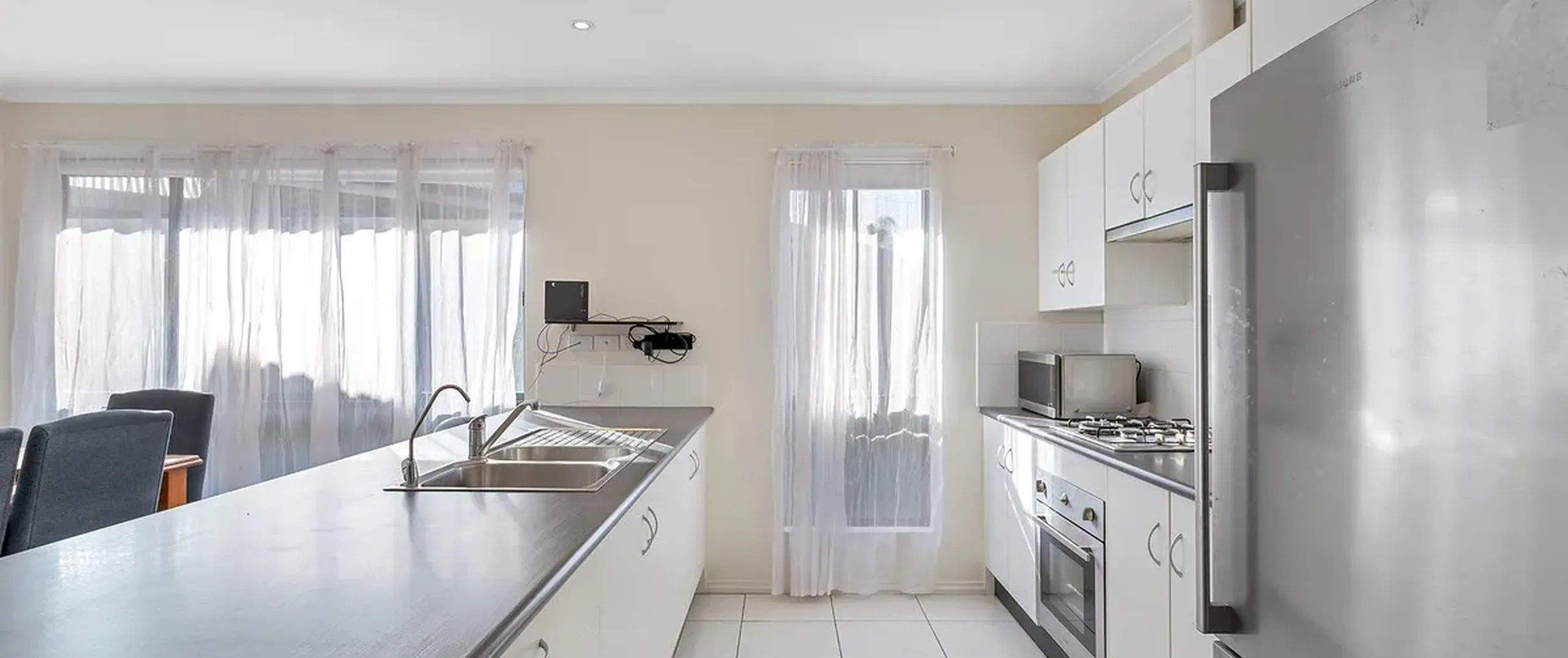 - Fully fenced, low maintenance rear yard with rainwater tank