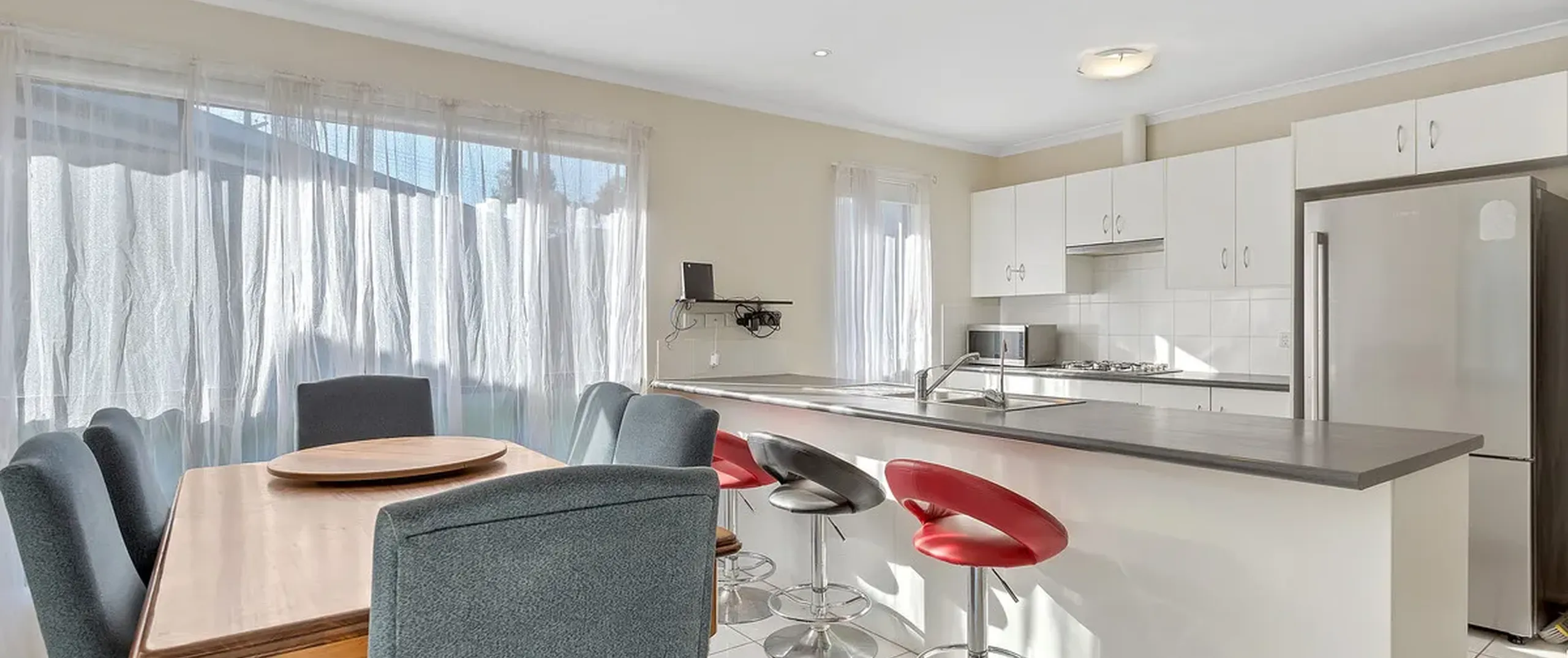 - Stylish kitchen with stainless steel appliances, gas cooktop, breakfast bar and ample bench and cupboard space