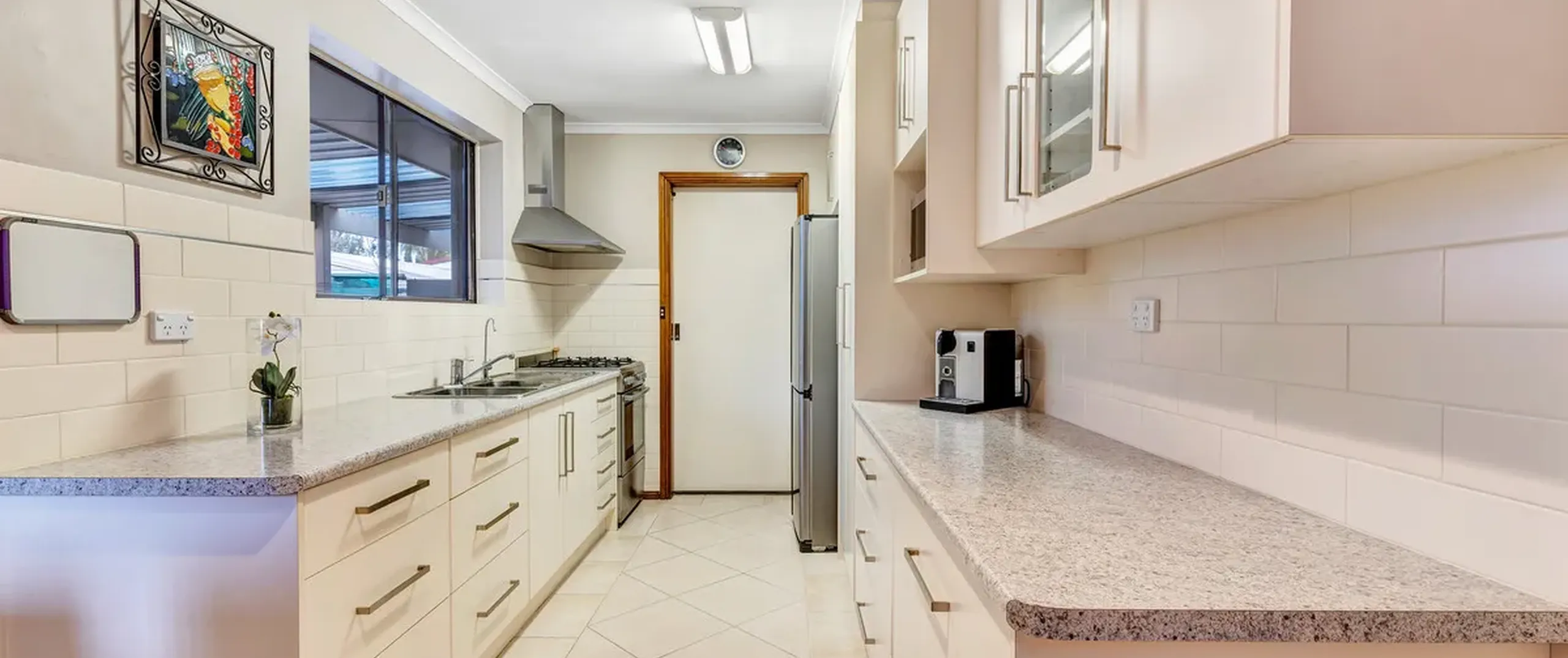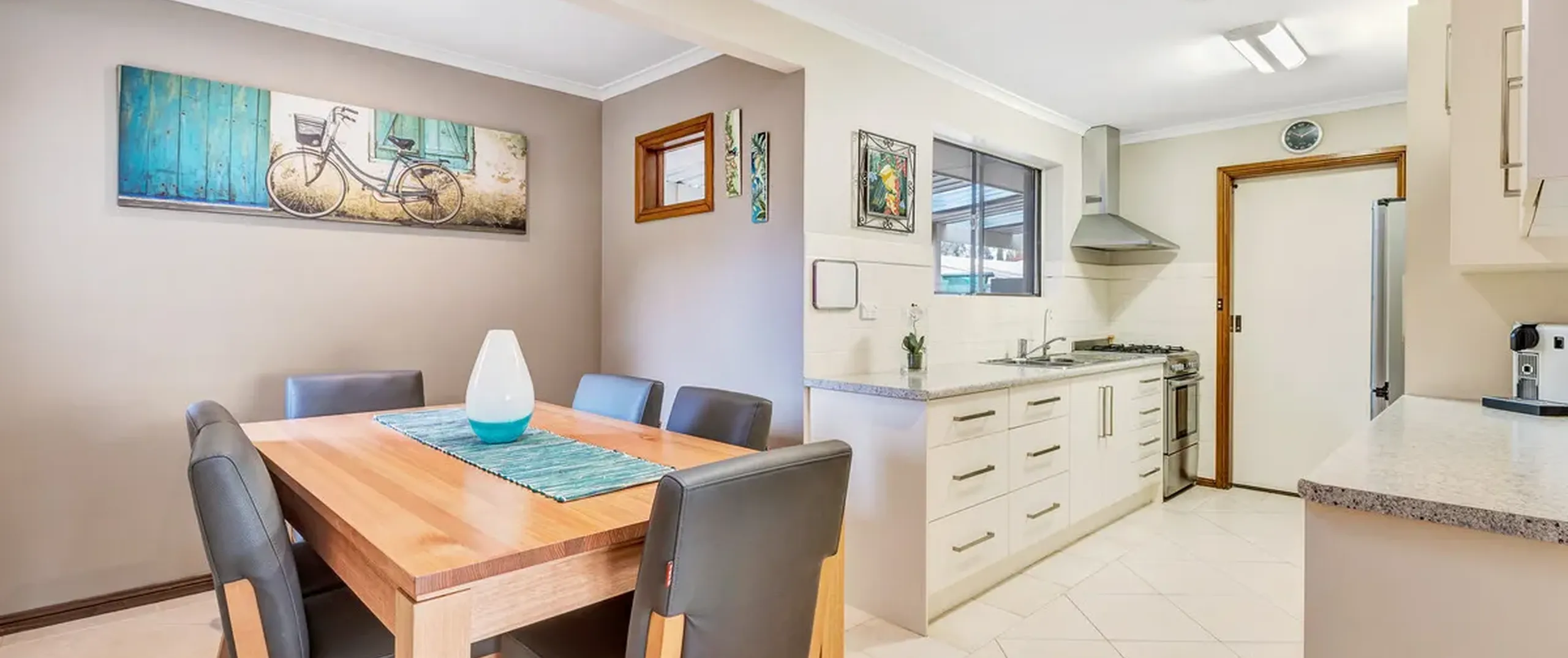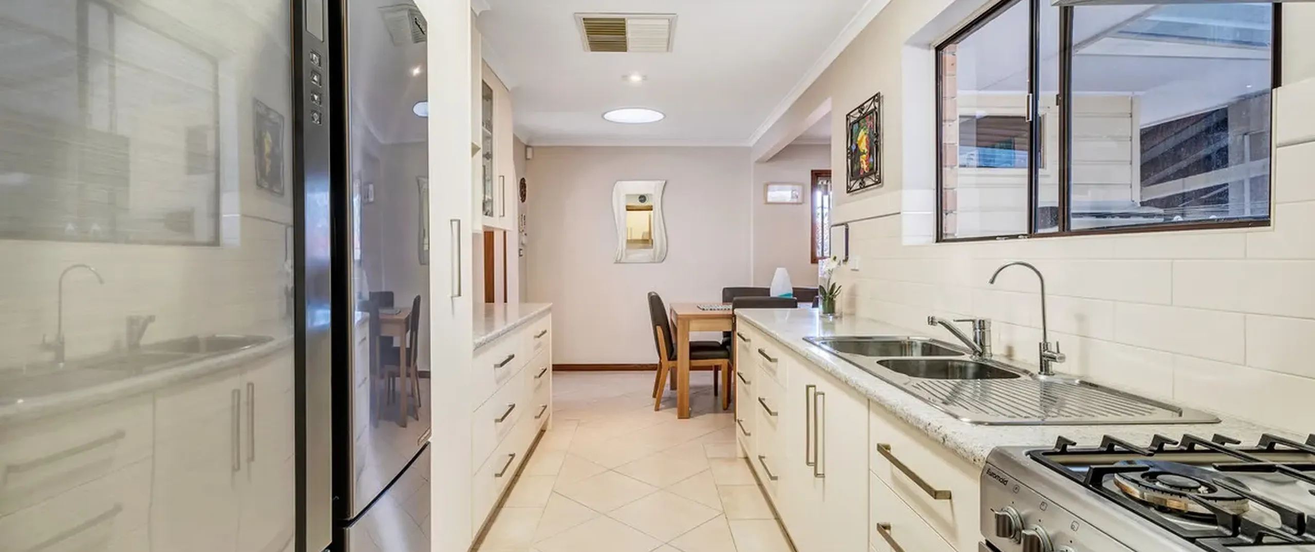- Modern kitchen with ample cupboard and bench space and stainless steel appliances